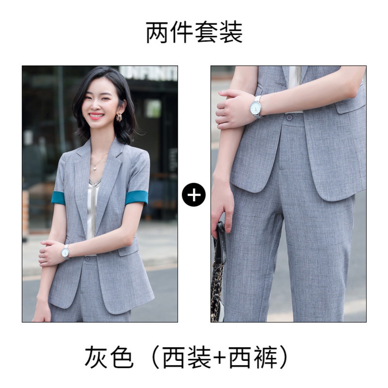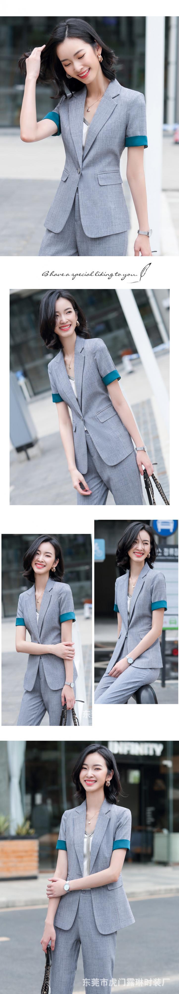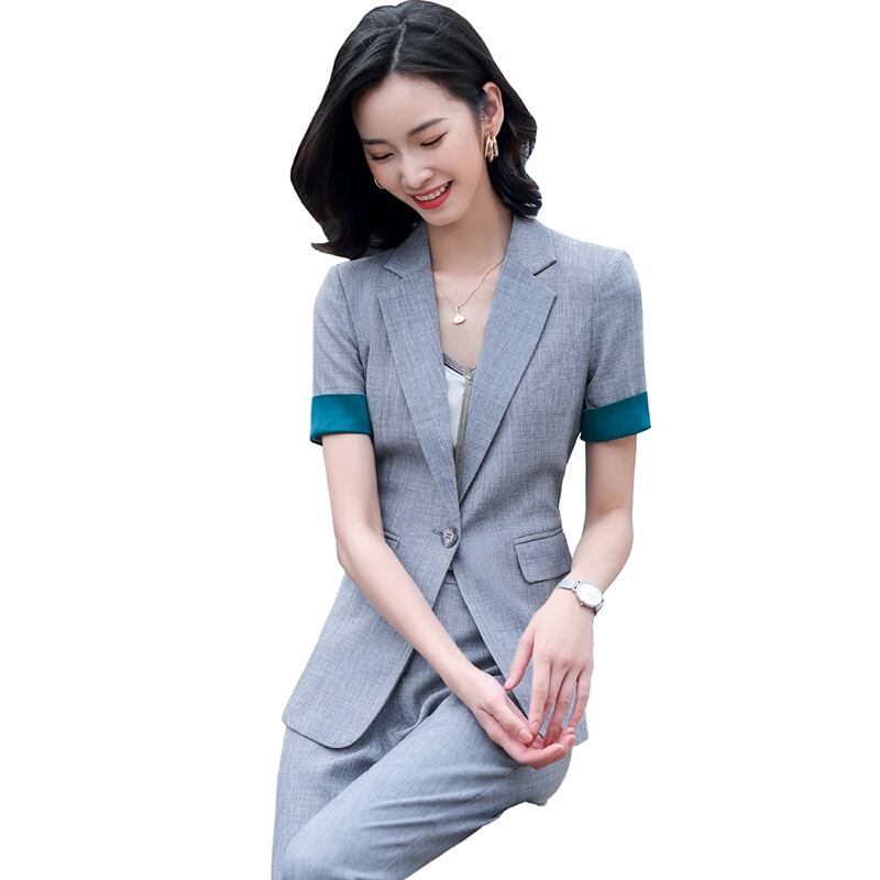 【新作】【送料無料】 プロの半袖スリムスーツジャケットロングパンツスーツ女性2020夏の新しいビジネスファッションツーピーススーツ-アリババ ショート ハーフスリーブ サマー 夏物 12b369277589004