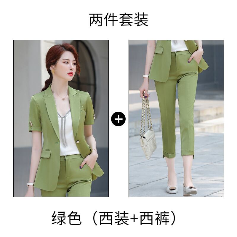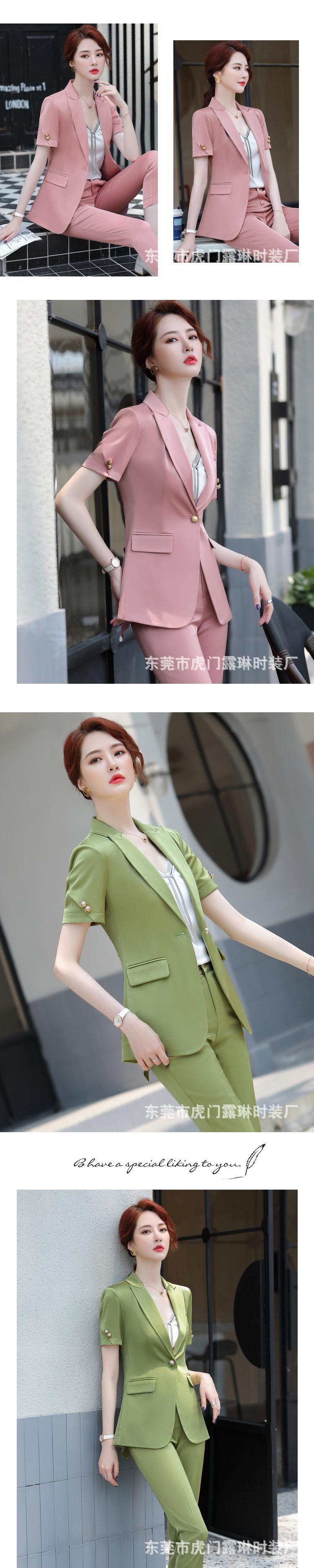 【新作】【送料無料】 半袖プロスーツジャケットパンツスーツレディース2020夏新作ビジネスファッションツーピーススーツ-アリババ サマー 夏物 12b346767267239