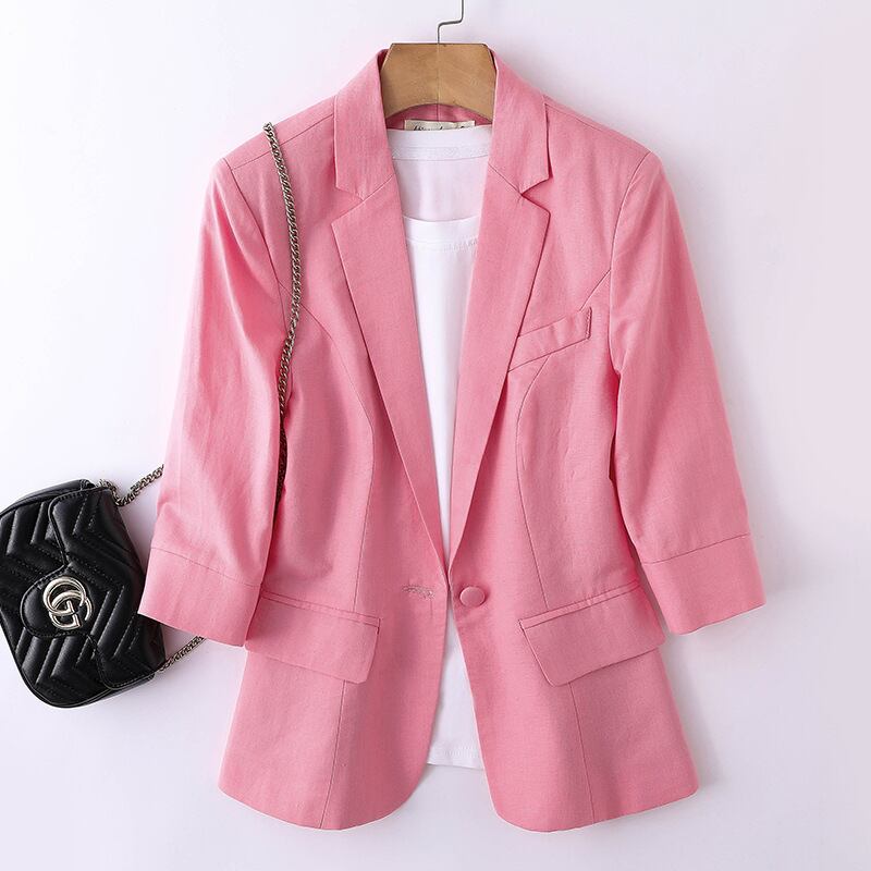【新作】【送料無料】 リネン通気性七分袖スリムスモールスーツジャケットeseカジュアルスーツ2020春と夏の新しい婦人服-アリババ スプリング 春物 サマー 夏物 12b328028864972