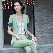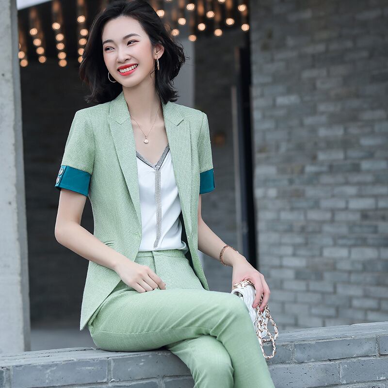 【新作】【送料無料】 2020年夏の新しいネットレッドウエスタンスタイル半袖スーツレディースズボンジャケットプロスーツシンプルなツーピーススーツ-アリババ サマー 夏物 12b355298738446