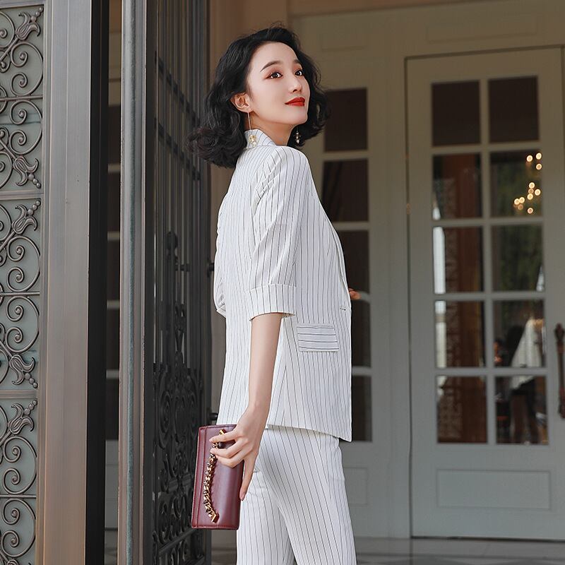 【新作】【送料無料】 2020年の新しい女性のプロのミッドスリーブウエスタンエンブリーパンツスーツ作業服エルスタッフユニムフロントデスクユニムOL服-アリババ 12b354398251305