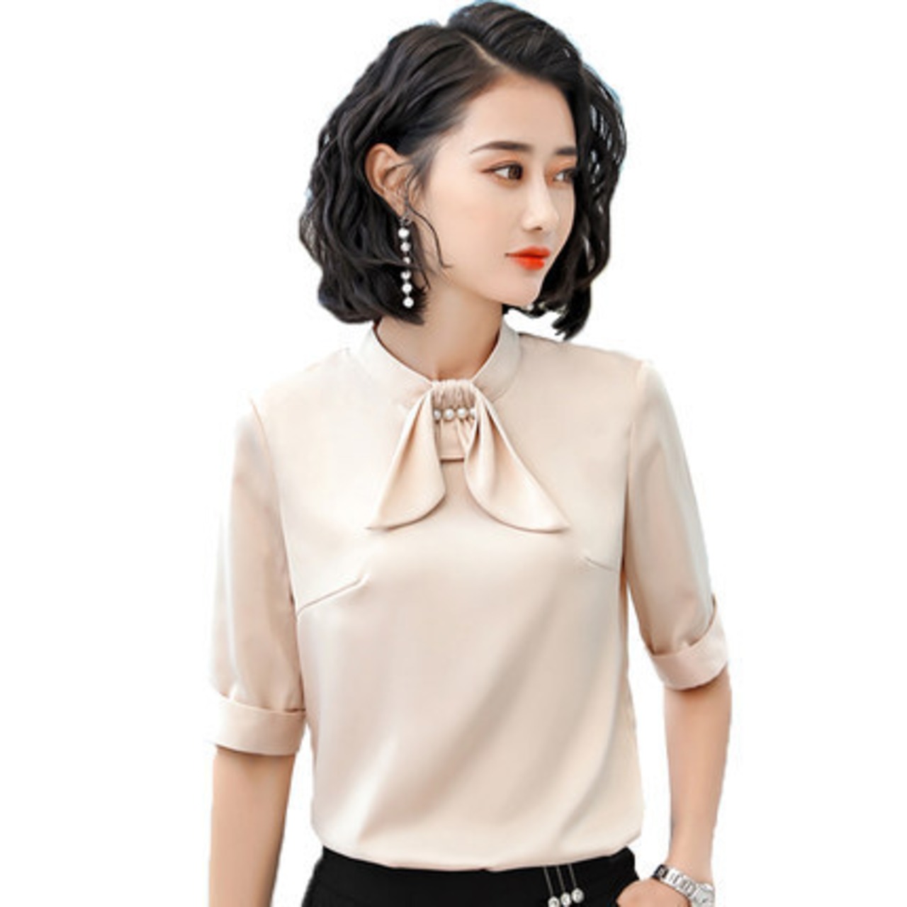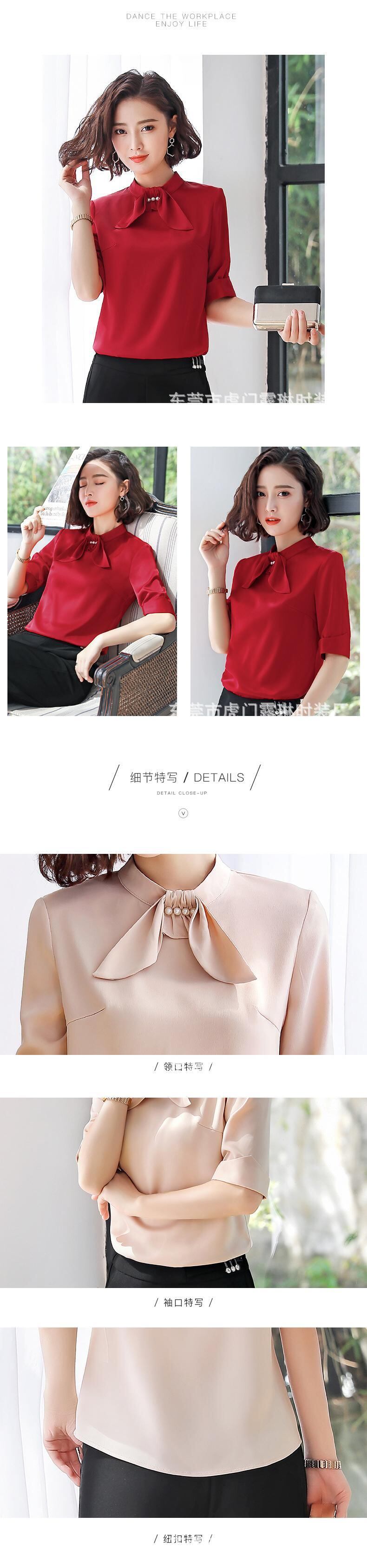 【新作】【送料無料】 2020年夏の新しい女性の5ポイントミドルスリーブレッドプロ通勤ビジネス気質シャツスリムトップ-アリババ サマー 夏物 12b312837518350