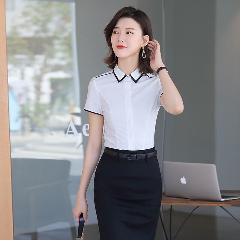 【新作】【送料無料】 2020年夏の新しい婦人服プロフェッショナルフロントビューティーサロン半袖シャツビジネスコミュータースリムシングルブレストトップ-アリババ サマー 夏物 12b357413560834