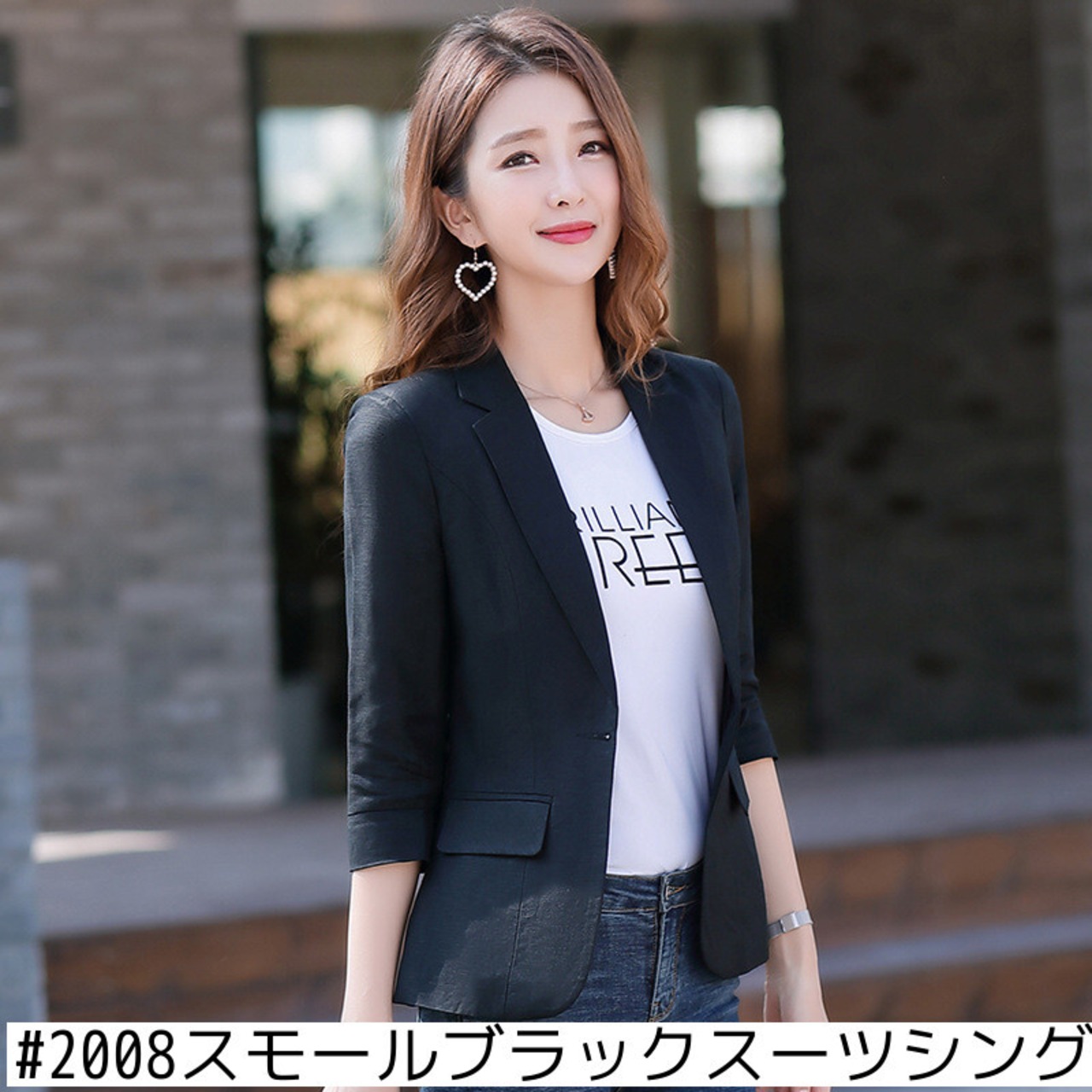 【新作】【送料無料】 ブラックラミーセブンポイントミッドスリーブスモールスーツジャケット2021春夏新作レディースコミュータースリムスーツジャケットレディース-アリババ スプリング 春物 サマー 夏物 12b375149006073