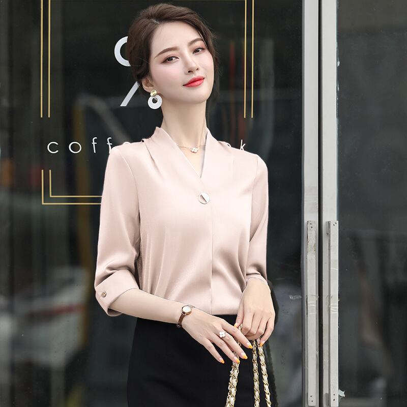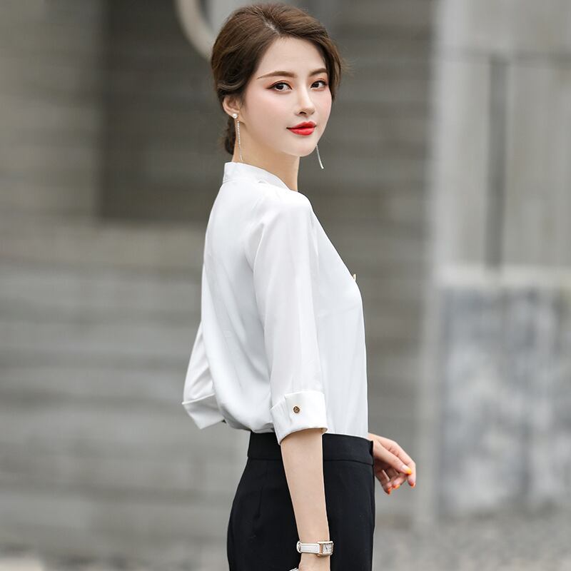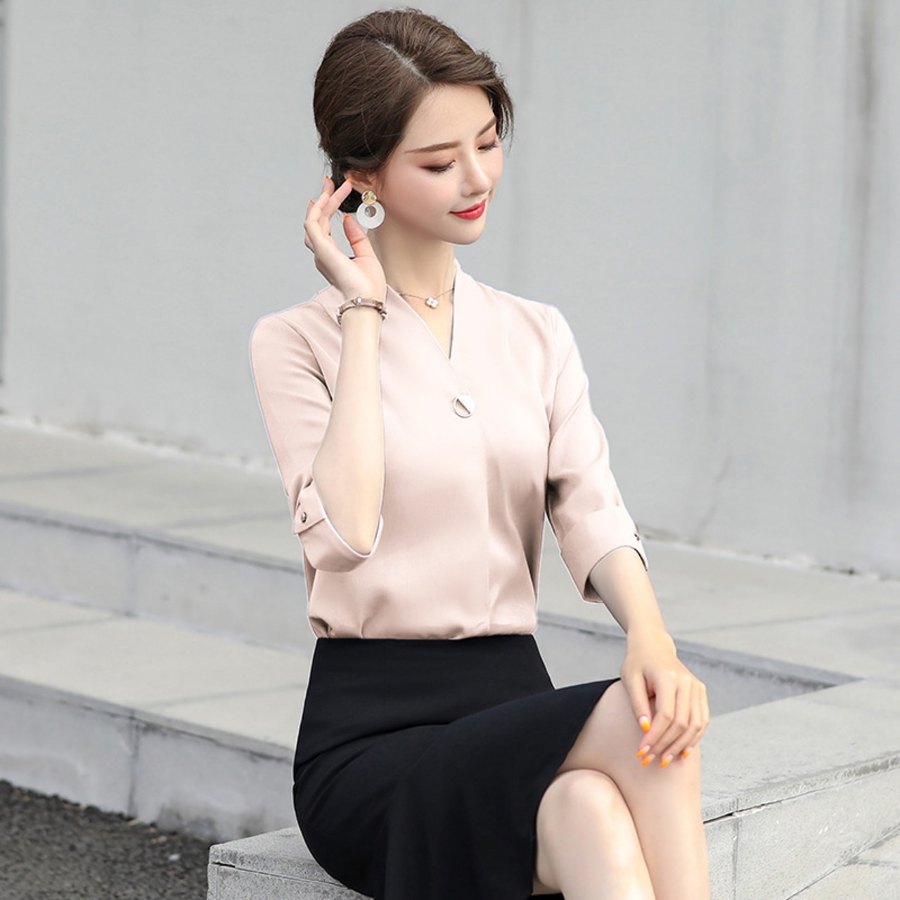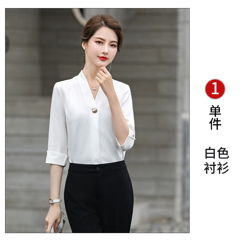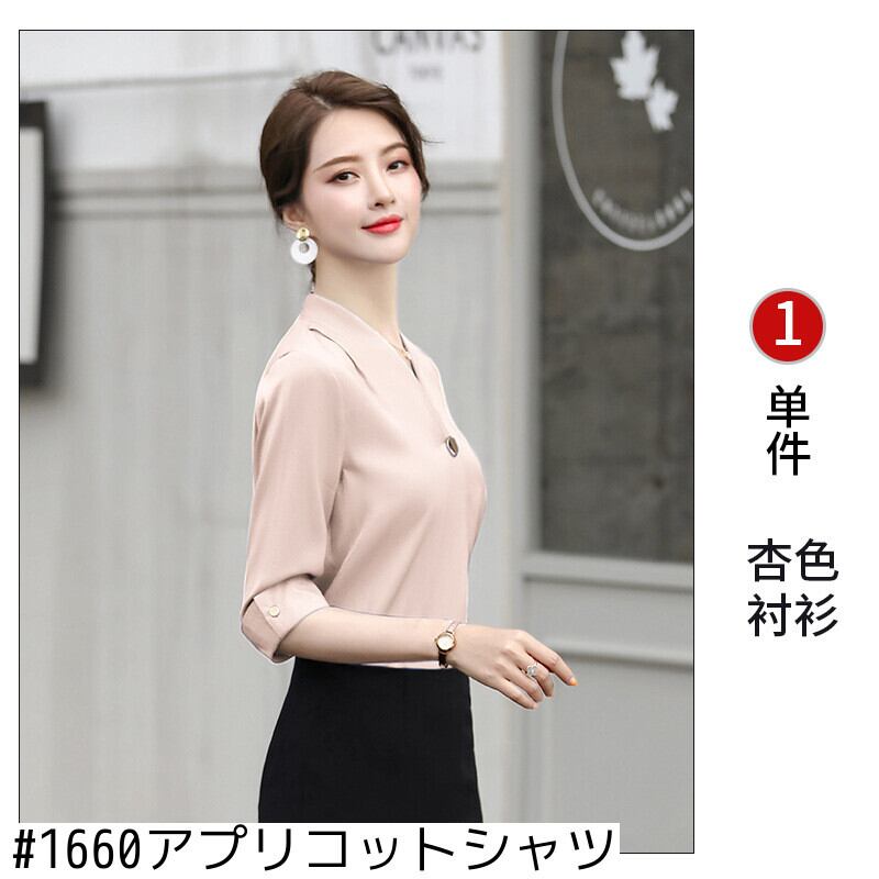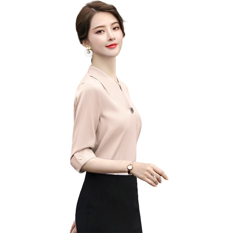 【新作】【送料無料】 ファイブポイントミドルスリーブエレガントウエスタンスタイルシャツ2020春夏新作スリムヘッジビジネス無地通勤レディースブラウス-アリババ スプリング 春物 サマー 夏物 ソリッドカラー 12b33398070601