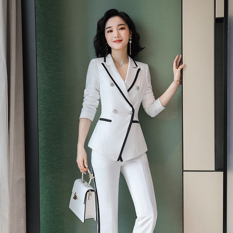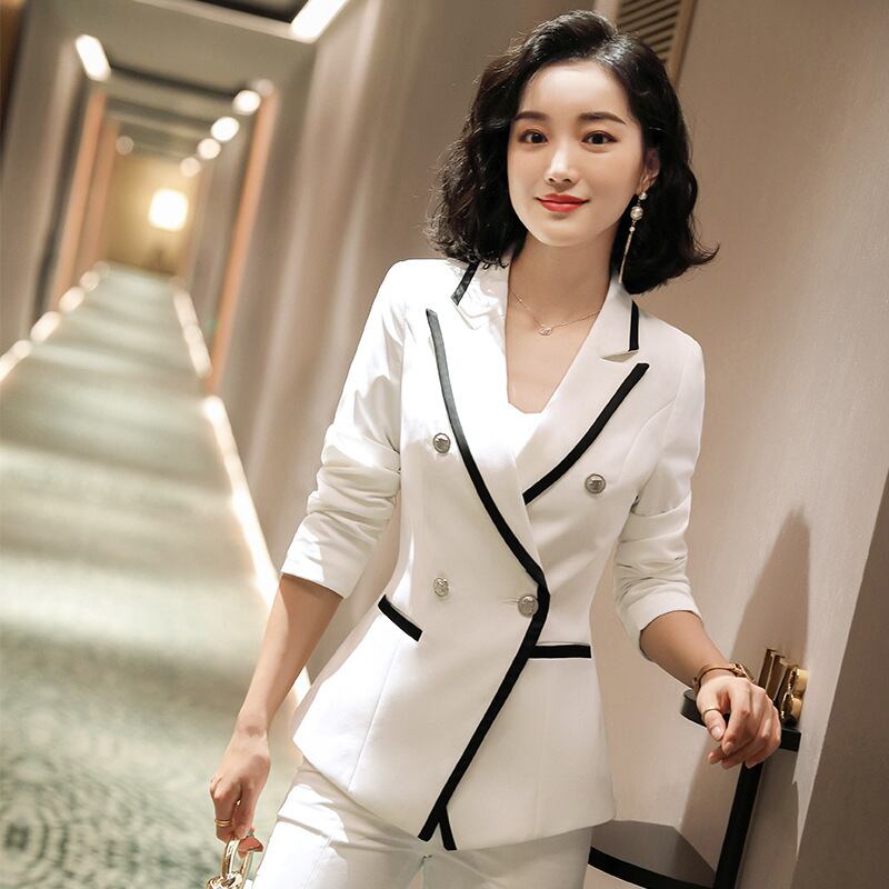【新作】【送料無料】 白い小さなスーツスーツ女性2020春と夏の新しいスプリットパンツプロフェッショナルビジネスOL気質ツーピーススーツ-アリババ ホワイト スプリング 春物 サマー 夏物 12b342736410267