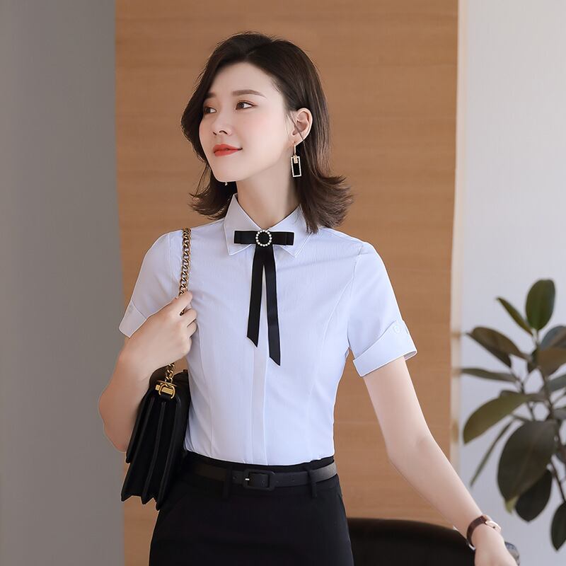 【新作】【送料無料】 2020年夏の新しい女性の襟シングルブレストプロ銀行オーバーオールビジネス通勤フロントデスクインタビューシャツ-アリババ サマー 夏物 12b394310318717