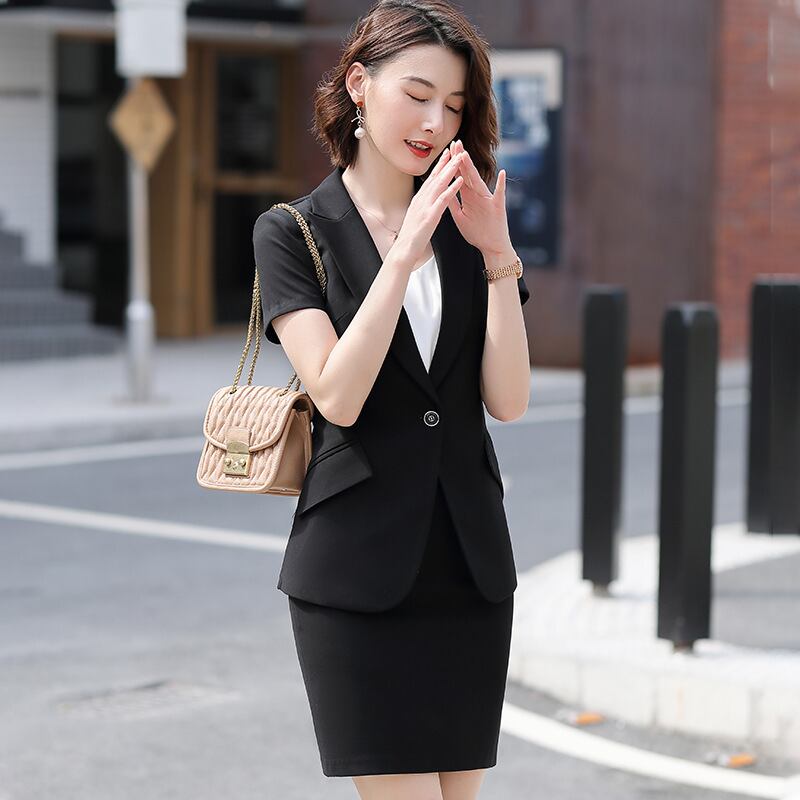 【新作】【送料無料】 黒のスモールスーツ半袖スーツ女性2020年春夏新プロサラリーマンOL通勤気質は薄いツーピーススーツ ブラック スプリング 春物 サマー 夏物 会社 学校 通勤や通学にも 12b35364334481