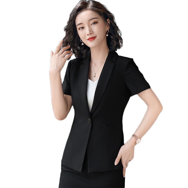 【新作】【送料無料】 フロントデスクインタビュープロの作業服スーツパンツスーツ女性2020春と夏の新しい半袖ジャケットパンツツーピースセット-アリババ スプリング 春物 サマー 夏物 12b36277626021
