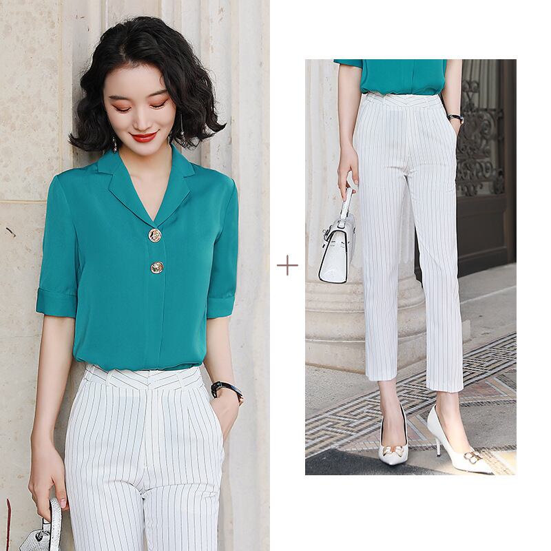 【新作】【送料無料】 2020年の新しい夏の有名人の気質ロイヤルシスターライトおなじみのスタイルのシャツウエスタンスタイルのツーピースファッションプロのスーツの女性-アリババ サマー 夏物 12b361834733744