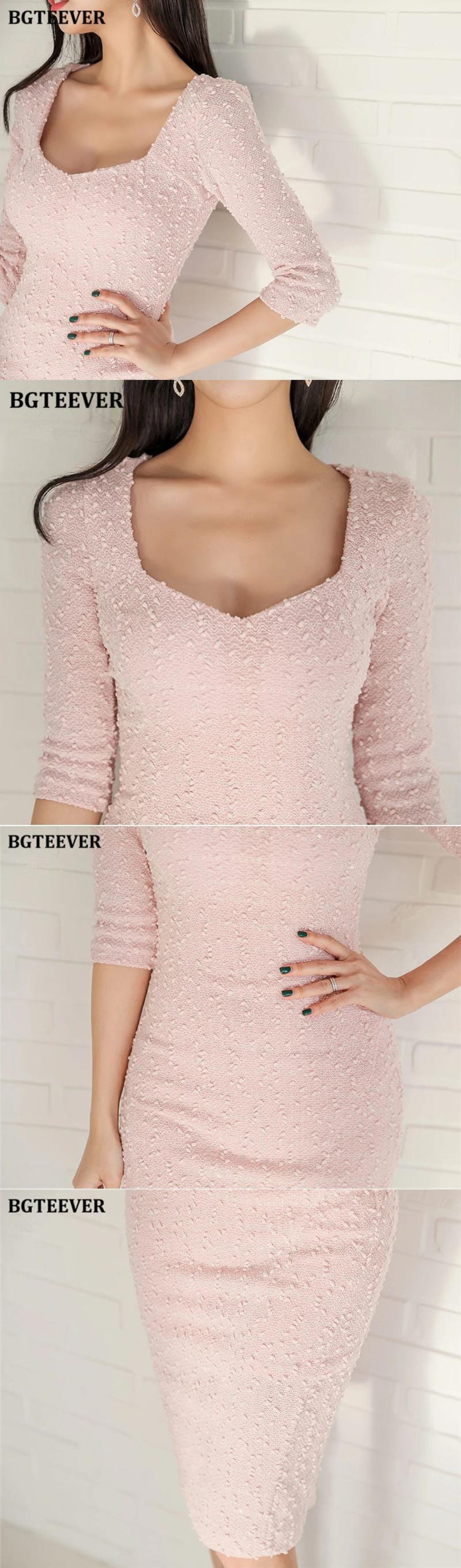 【新作】【送料無料】 スクエアカラーレディースペンシルドレススリムウエストスプリットパッケージヒップミディドレスシースVestidos スクウェア 12b158649106086