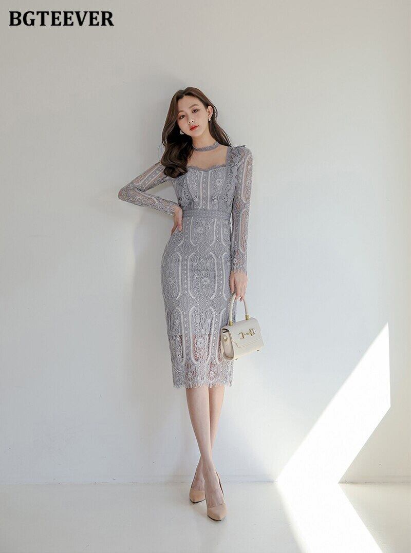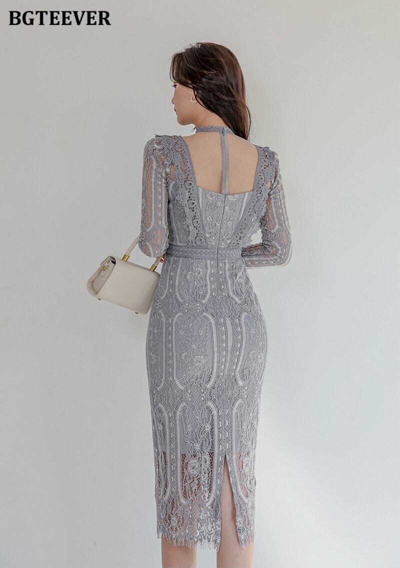 【新作】【送料無料】 BGTEEVERスリムレースパッケージヒップドレス2021長袖ペンシルスプリットドレス春の女性Vestidos ロング スプリング 春物 12b149269054867