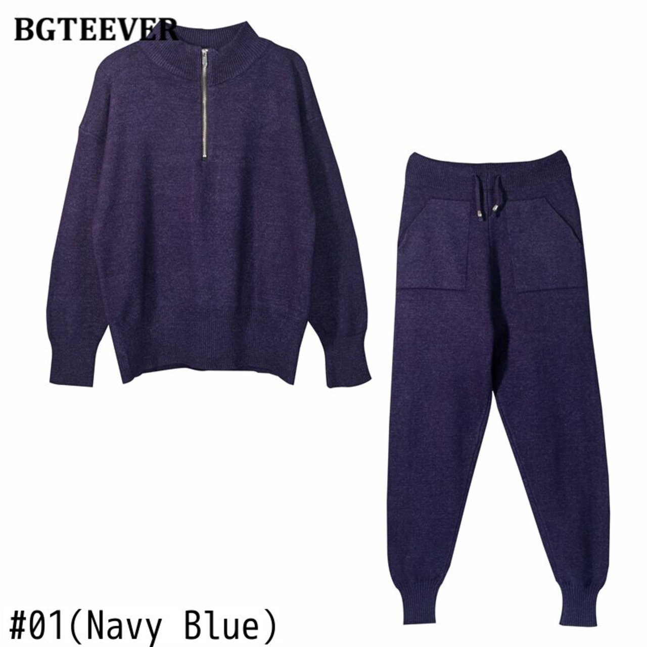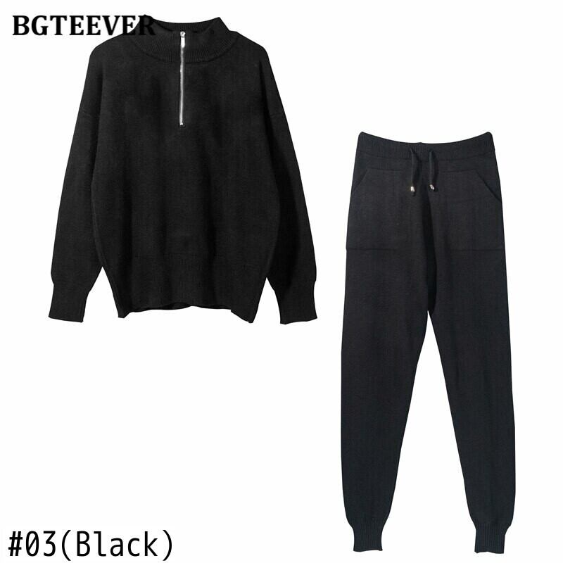 【新作】【送料無料】 BGTEEVER Winter2ピースニットセットシックなジッパープルオーバーセーター&ドローストリングパンツレディースセータートラックスーツ ウィンター 冬物 12b196478936272