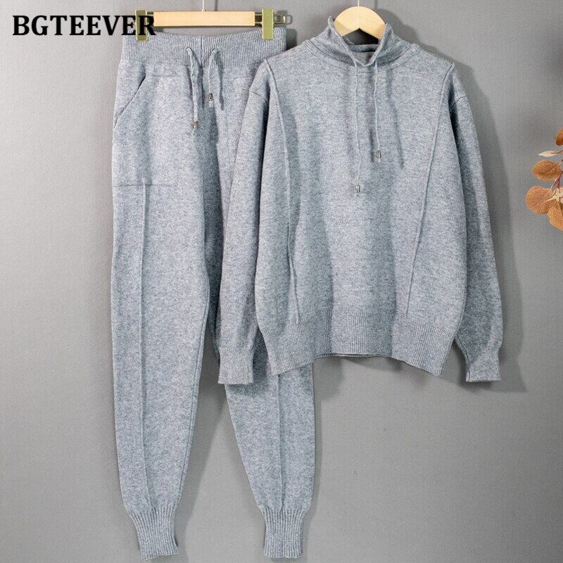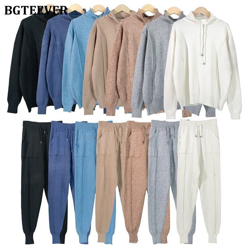 【新作】【送料無料】 BGTEEVERレディースニット2点セットフード付きプルオーバースウェットシャツ&巾着セーターパンツ厚みのあるセーターセット 12b122207360250