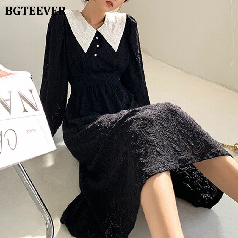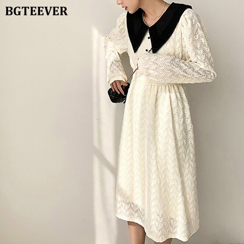 【新作】【送料無料】 BGTEEVERスプリングラペルパッチワークレディースレースドレスシングルブレストスリムウエストAラインミディドレス 春物 12b117055837932