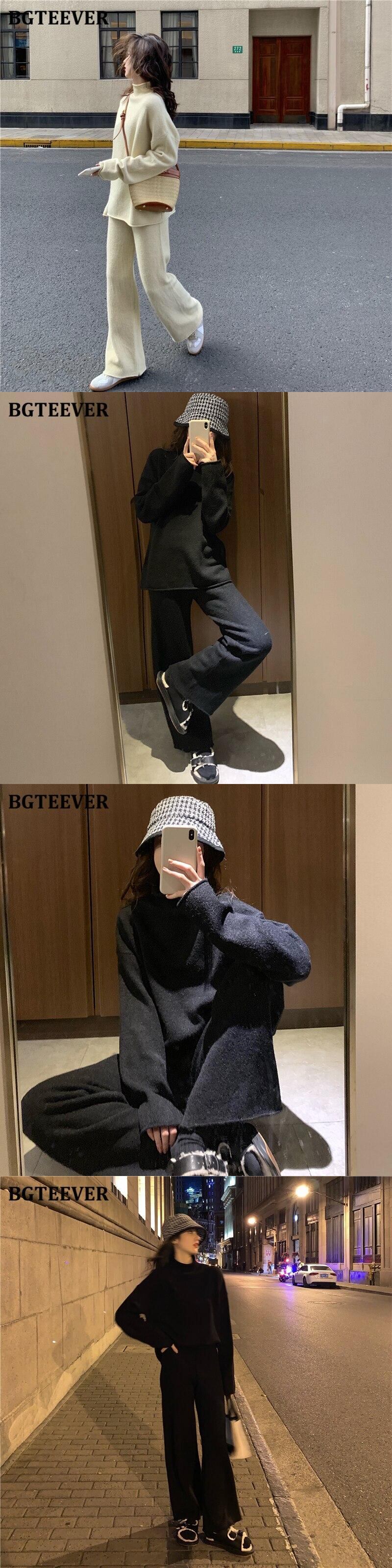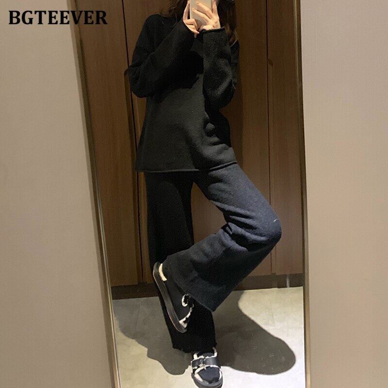 【新作】【送料無料】 BGTEEVER冬女性セーターセットタートルネックプルオーバー&伸縮性ウエストワイドレッグニットパンツルーズニット2点セット エラスティック ウィンター 冬物 ワイドパンツ 12b169268227689