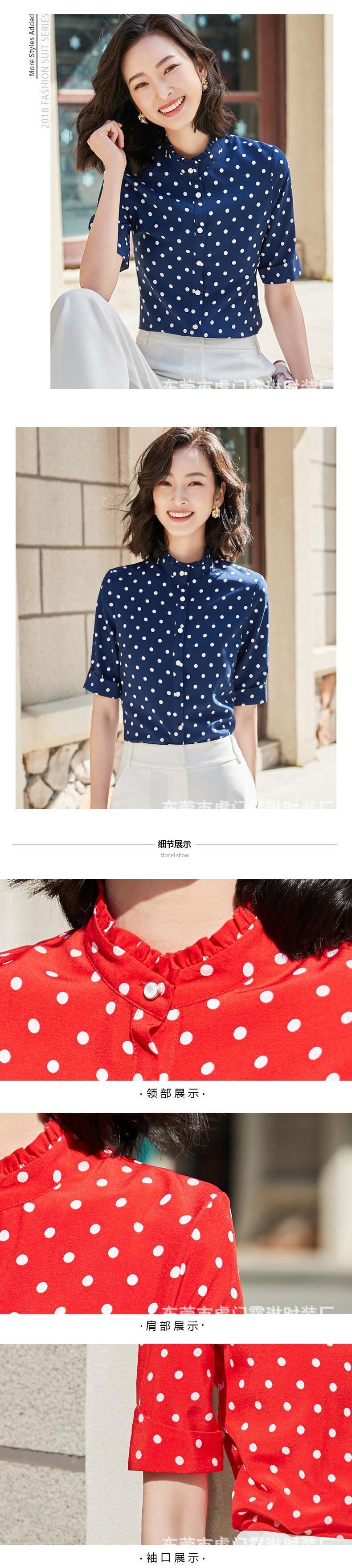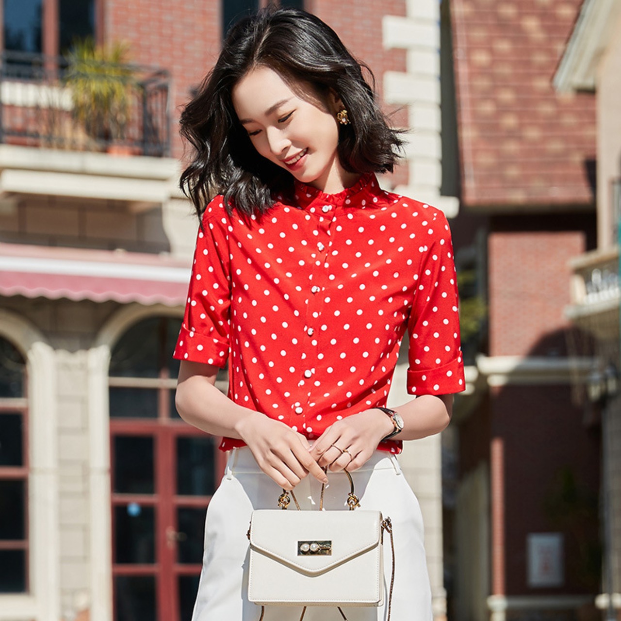 【新作】【送料無料】 2020年夏の新しい女性の赤い水玉のミッドスリーブシングルブレストビジネスシャツは薄いプロのカジュアルシャツのトレンドに見えます-アリババ レッド サマー 夏物 12b35866771345
