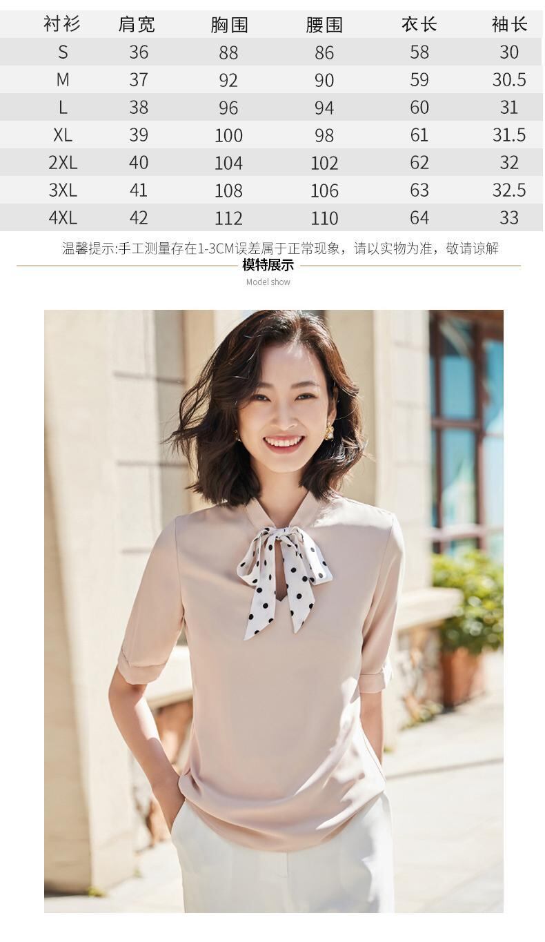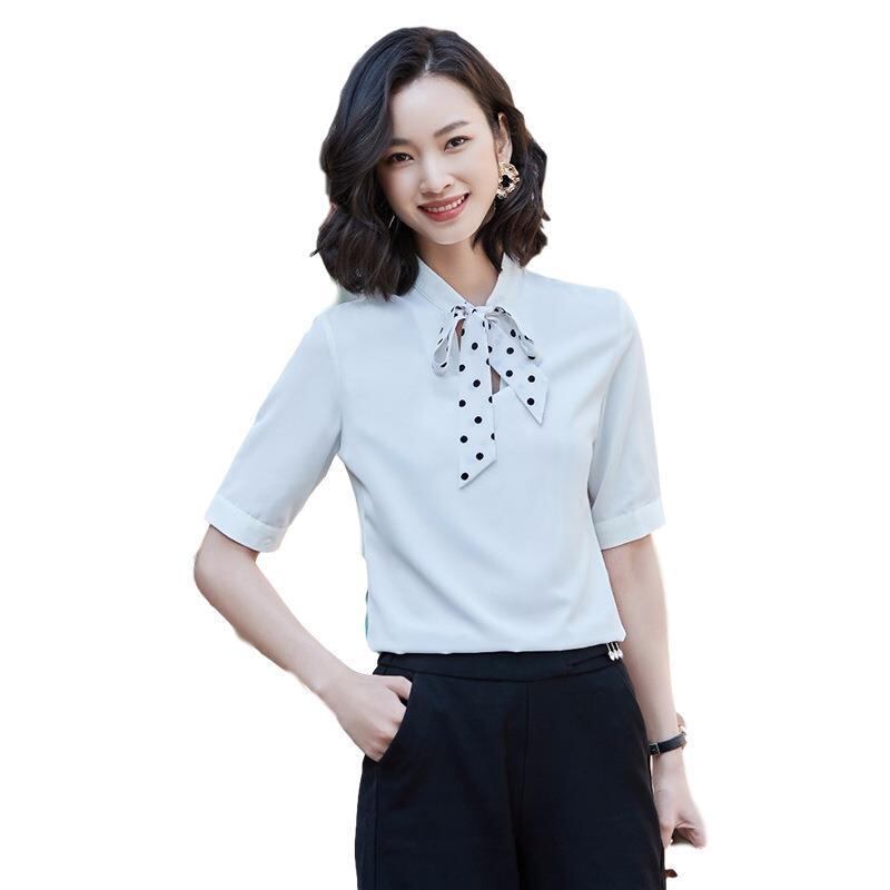 【新作】【送料無料】 2020年夏の新しい女性のスリムな5クォータースリーブスタンドアップカラータイボウビジネスコミューターシャツプロフェッショナルトップ-アリババ リボン サマー 夏物 12b35712228279