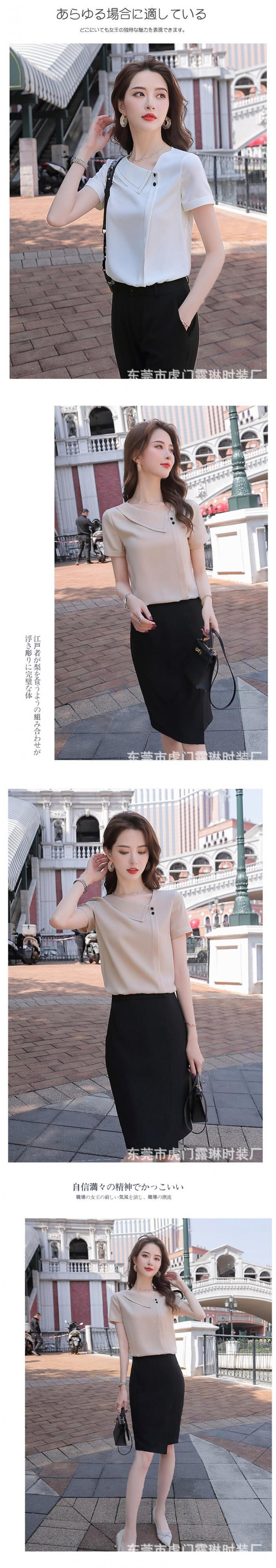 【新作】【送料無料】 2020年夏の新しい白い半袖プロコミューターシャツライト成熟したスタイルのウエスタンスタイルのブラウスパンツツーピーススーツの女性-アリババ ホワイト サマー 夏物 12b343563007201