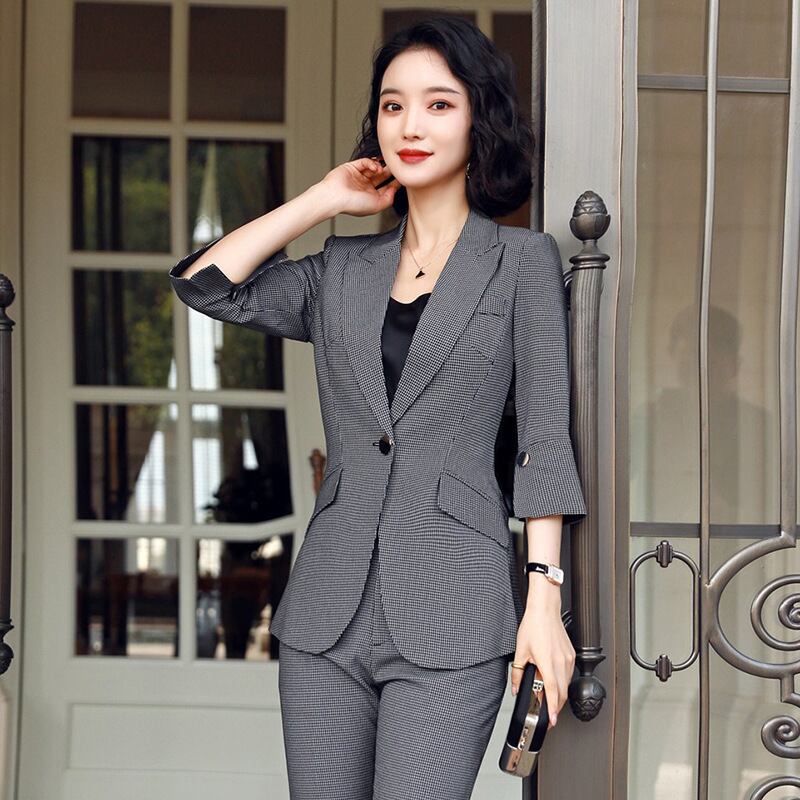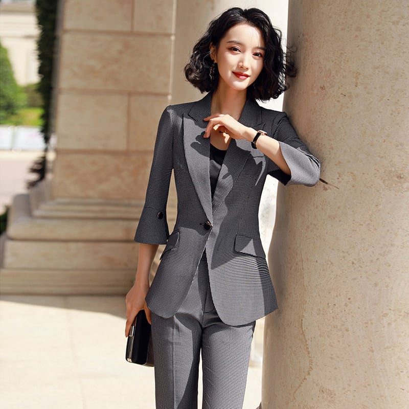 【新作】【送料無料】 黒のビジネス服ビジネスファインチェッカースーツパンツスーツ女性の2020年春夏の新しいカジュアルファッションツーピーススーツ-アリババ レッド ブラック スプリング 春物 サマー 夏物 12b352586180117