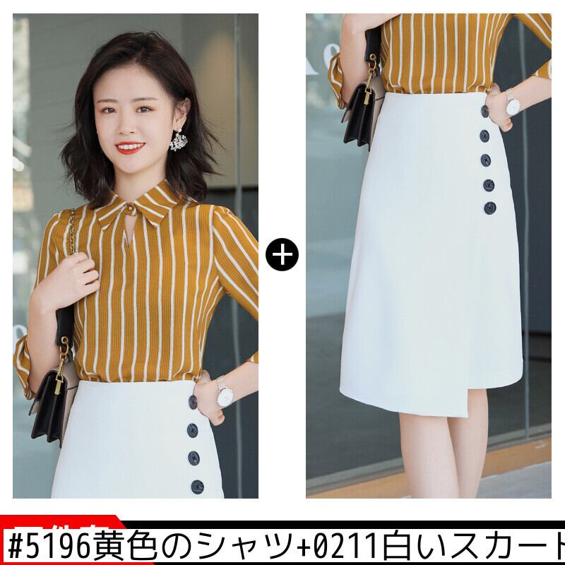 色:5196グリーンシャツ,5196黄色のシャツ,0211白いスカート,5196グリーンシャツ+0211ホワイトスカート,5196黄色のシャツ+0211白いスカート
