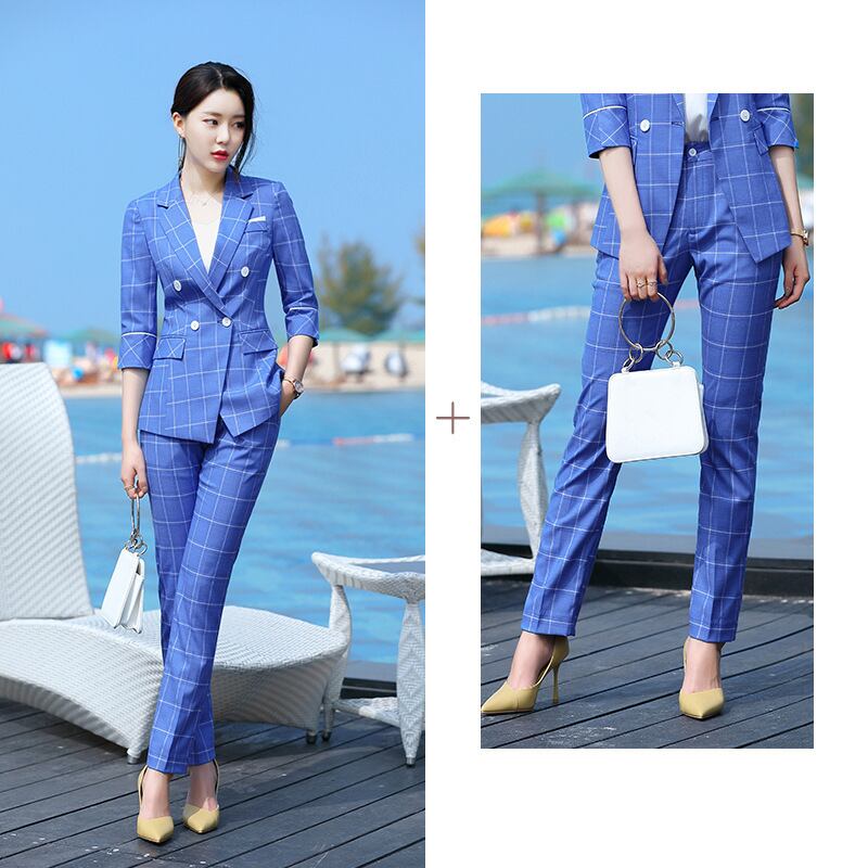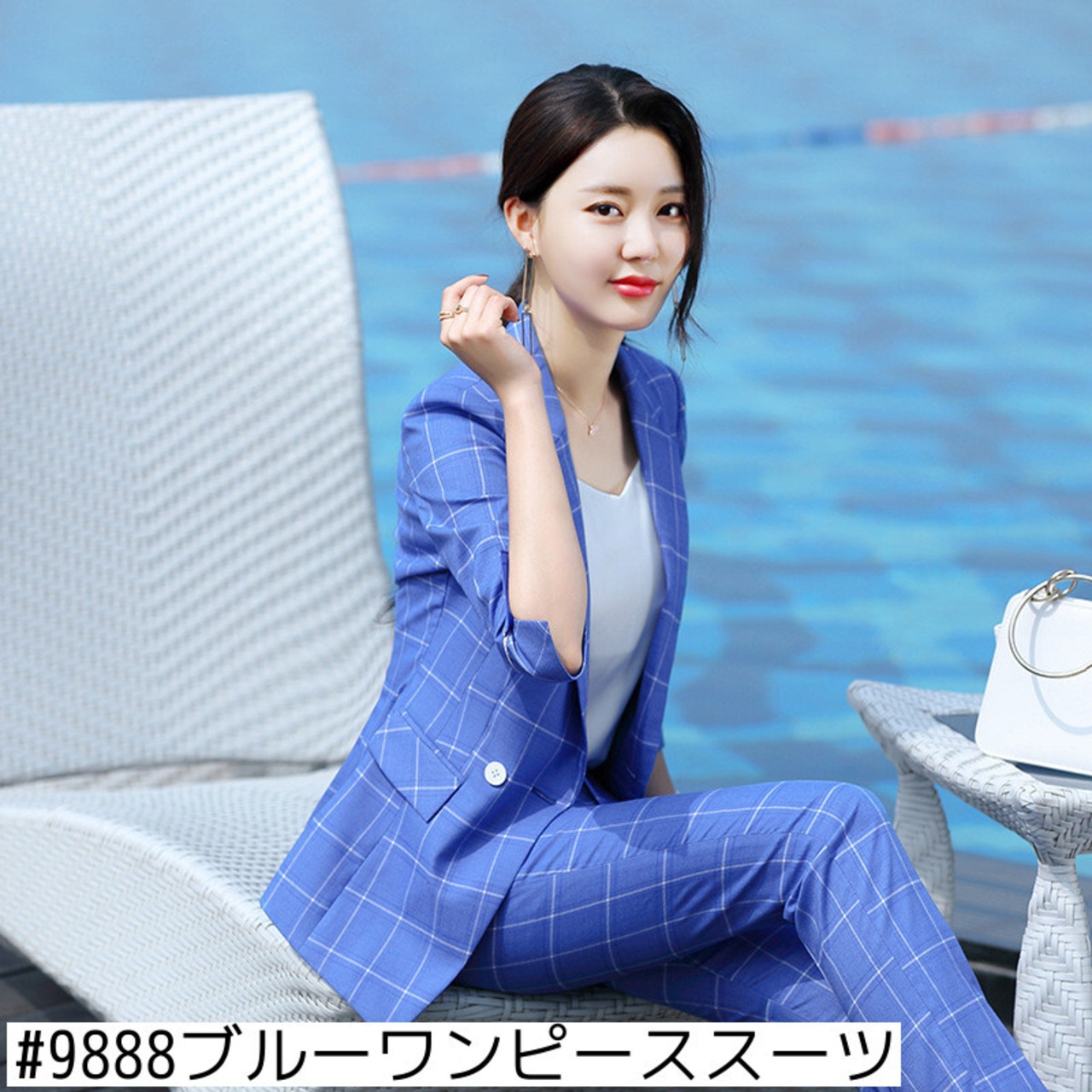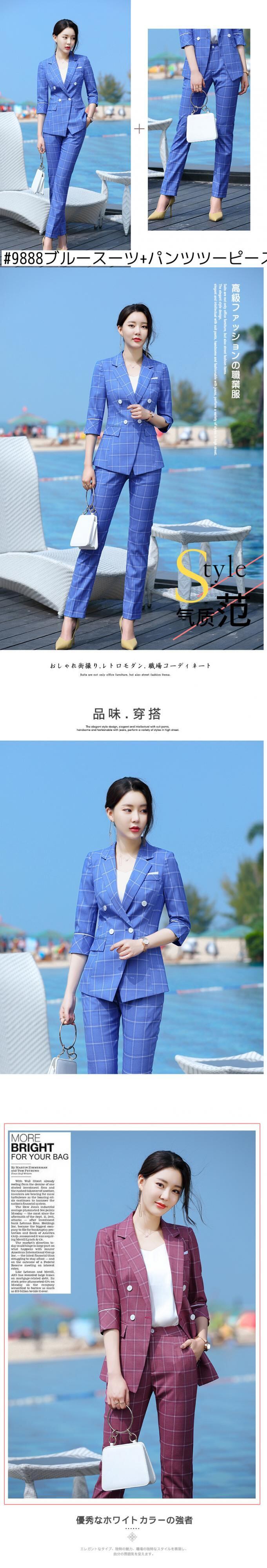 【新作】【送料無料】 2020年春夏新作ファッションミッドスリーブチェック柄スーツパンツツーピーススーツメスエインネットレッドプロフェッショナルウェア-アリババ スプリング 春物 サマー 夏物 12b327668684536