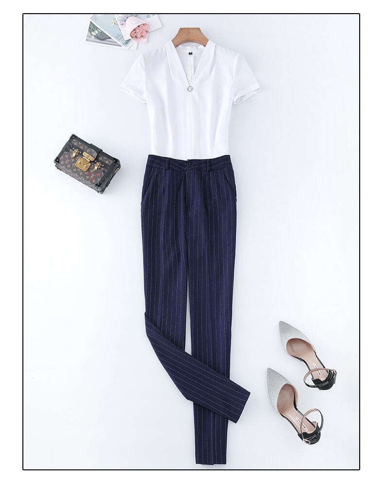 【新作】【送料無料】 年齢削減ホワイトシャツトップパンツツーピーススーツ女性2020夏新作パンツプロホワイトカラーオーバーオール-アリババ サマー 夏物 12b334480514011