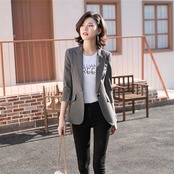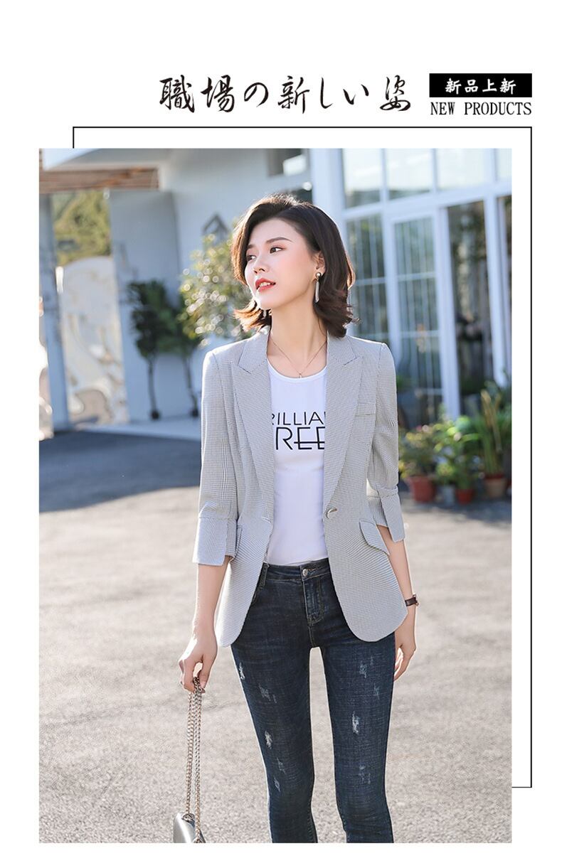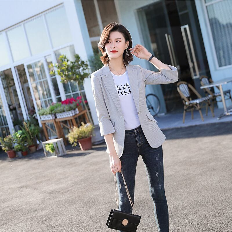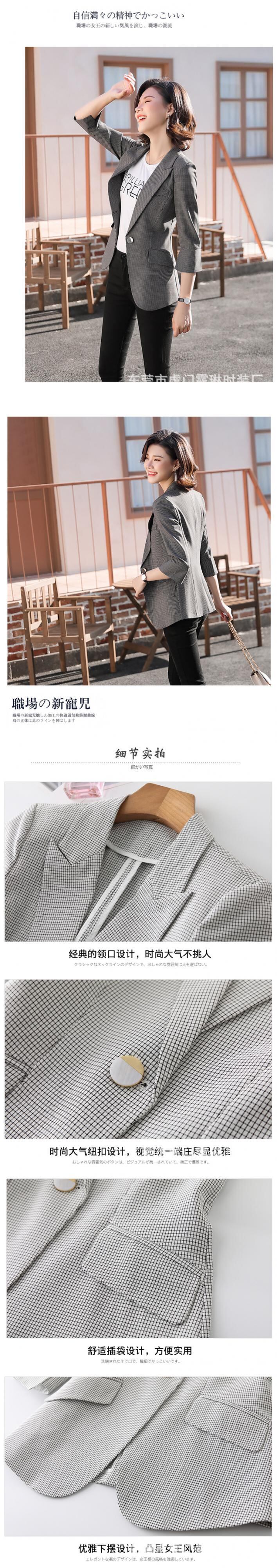 【新作】【送料無料】 黒の細かい格子縞のミッドスリーブスーツ2020春と夏の新しい女性の七分袖コミューターレトロカジュアルスモールスーツ-アリババ ブラック スプリング 春物 サマー 夏物 12b368153244494