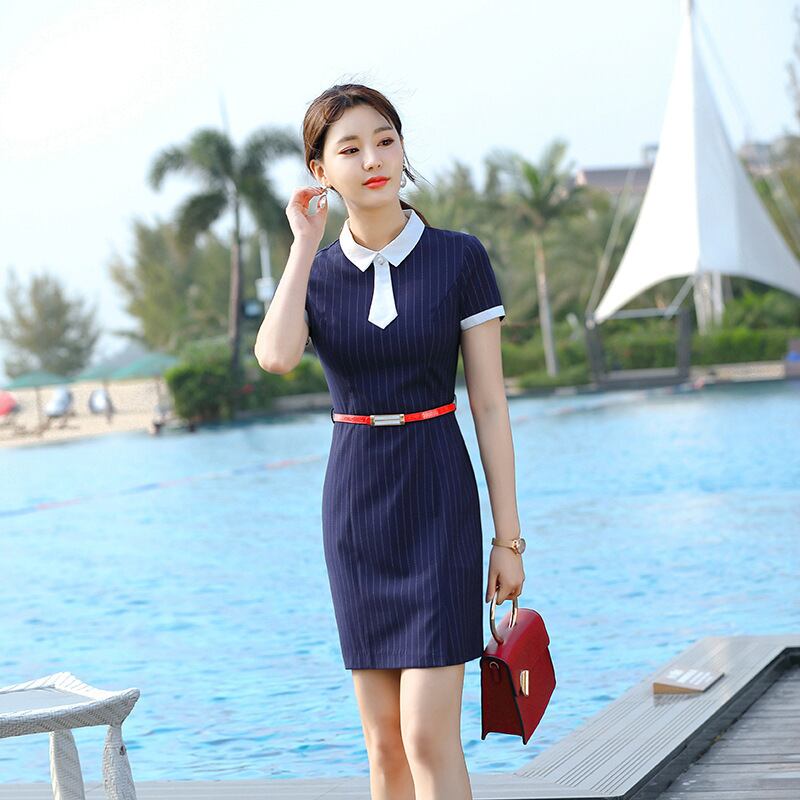 【新作】【送料無料】 ブルーストライプスーツドレス2020夏新作ヒットカラースクエアネックプルオーバープロヒップコミューターAラインスカート-アリババ サマー 夏物 スクウェア 12b337107029020