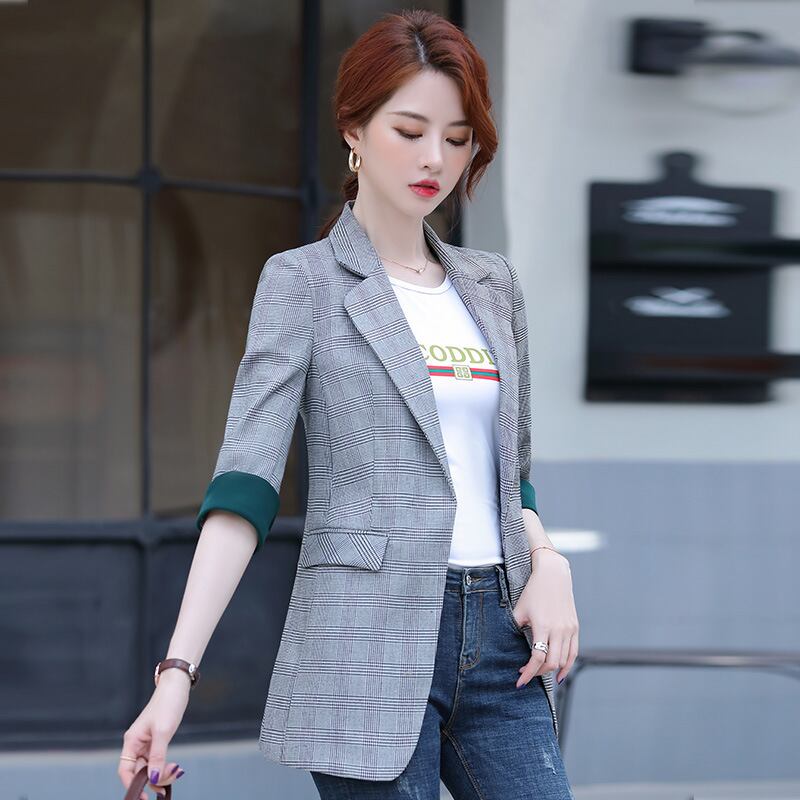 【新作】【送料無料】 2020年春夏新作レディースミッドスリーブチェック柄ロングスーツレトロウエスタンスタイルスモールフレグランススタイル対応スーツジャケット-アリババ スプリング 春物 サマー 夏物 12b38593104630