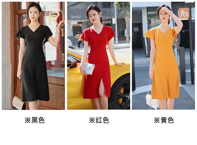 【新作】【送料無料】 女神ファン半袖プロフェッショナルドレス夏セクシーVネックスリムフィットミドル丈ドレス-アリババ ショート ハーフスリーブ サマー 夏物 12b365099580936