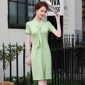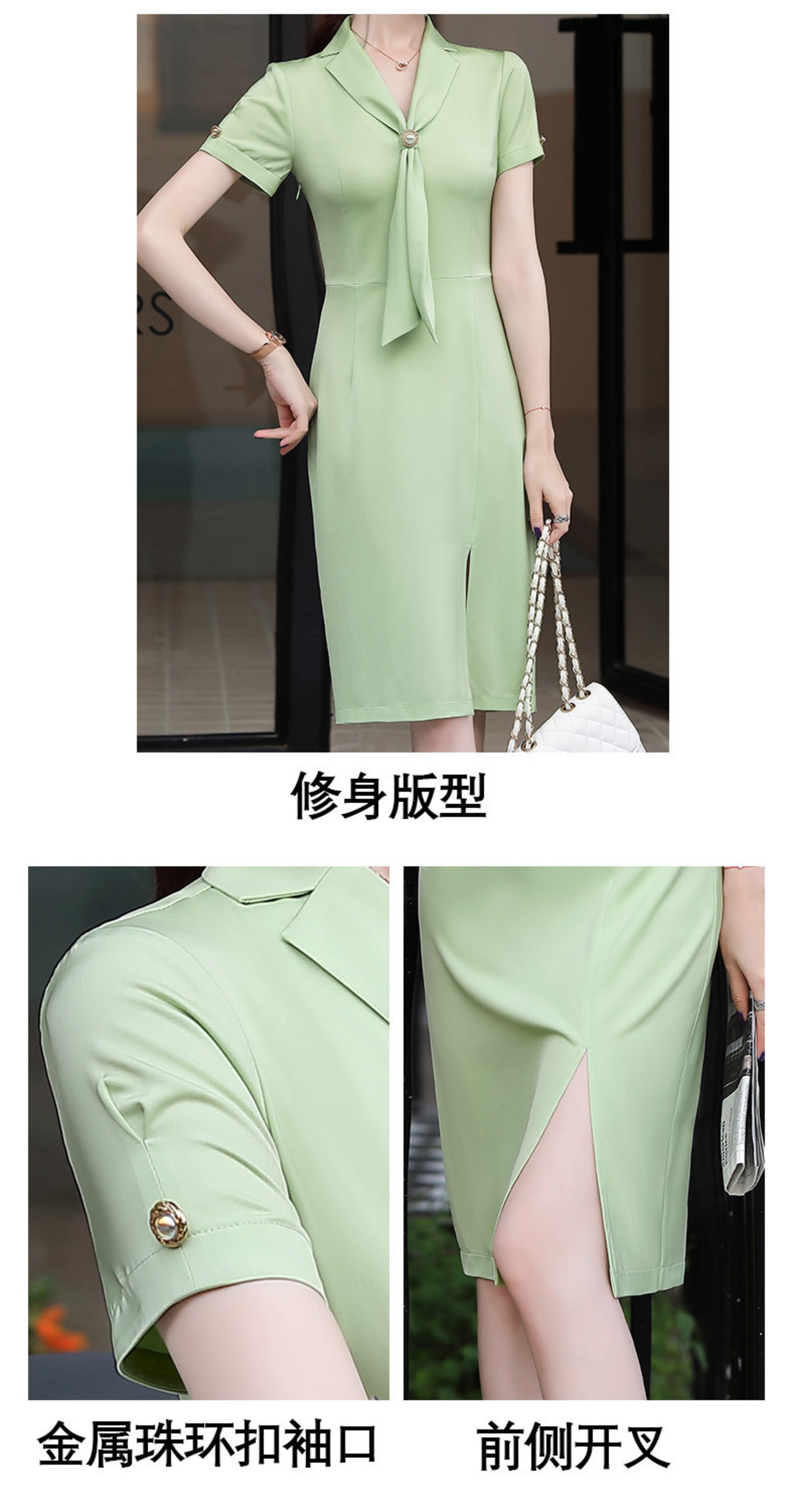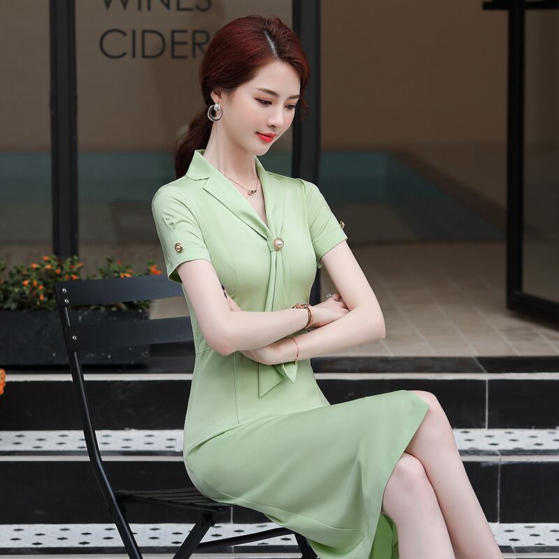【新作】【送料無料】 ブルー半袖スーツスカート2020夏新作レディースミドル丈バッグヒップAライン女神ファンコミュータードレス-アリババ サマー 夏物 12b344021296364