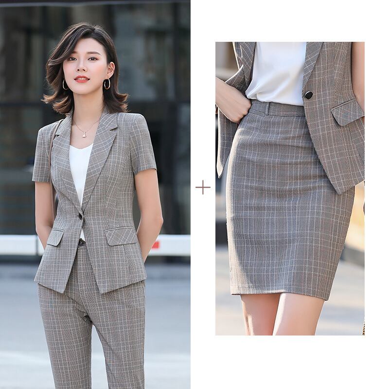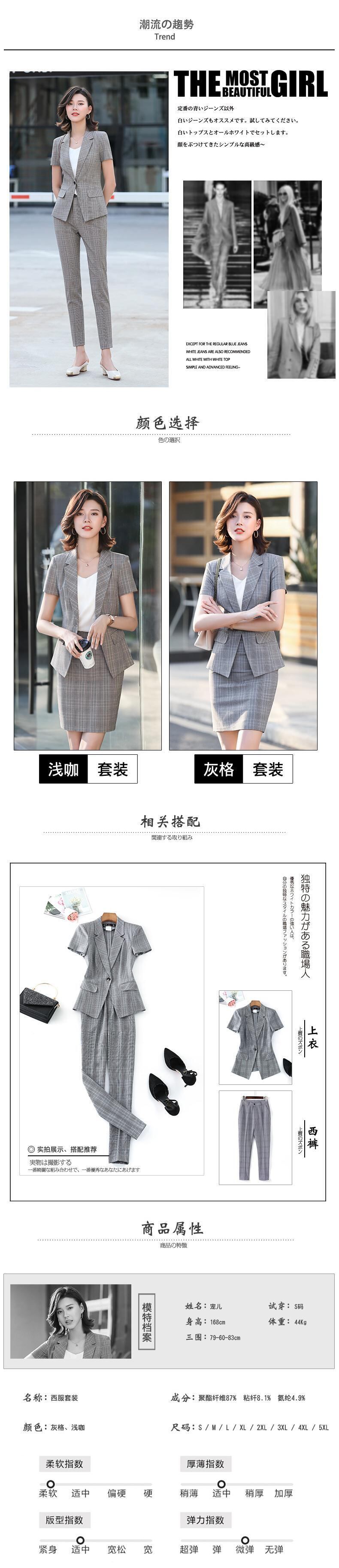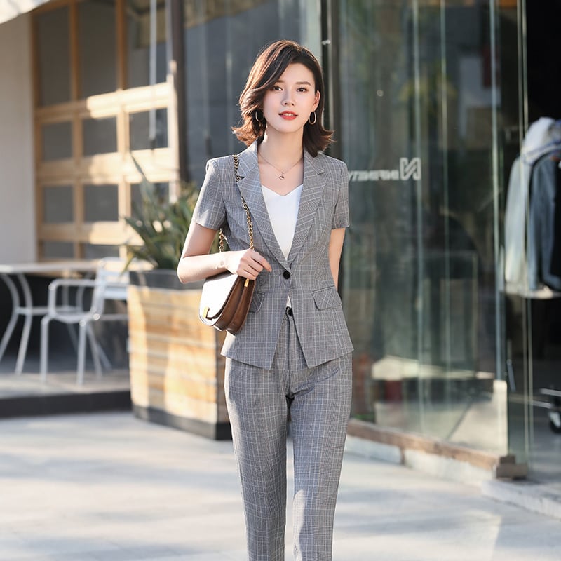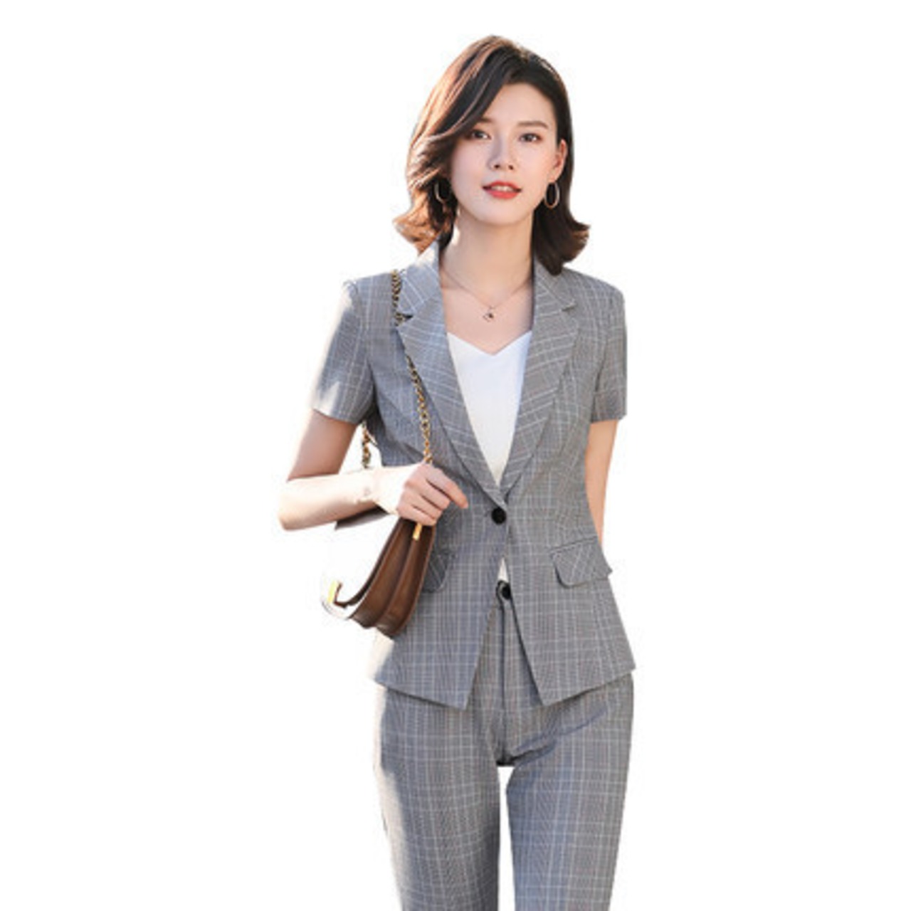 【新作】【送料無料】 2020年夏の新しいカジュアルチェック柄レトロスーツジャケットパンツツーピーススーツ女性通勤ビジネススーツ-アリババ サマー 夏物 12b33197688873