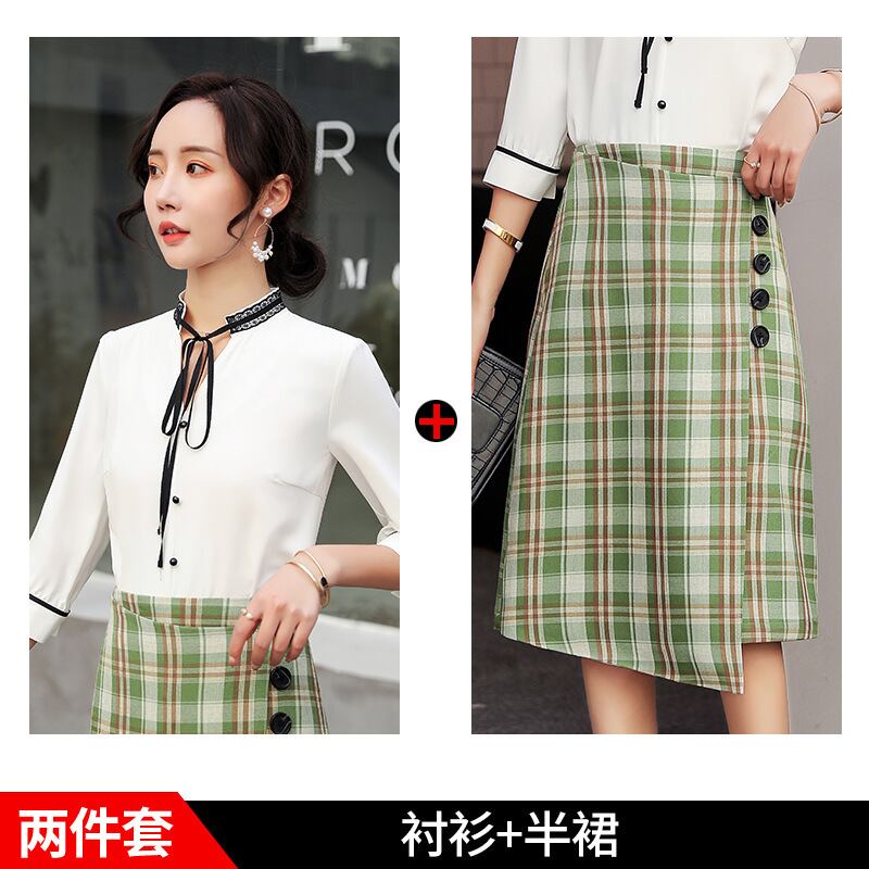 【新作】【送料無料】 プロのミッドスリーブレースアップシャツスーツスカート女性2020年夏の新しいウエスタンスタイルスタイルのシンプルなトップツーピースセット-アリババ サマー 夏物 12b370873477359
