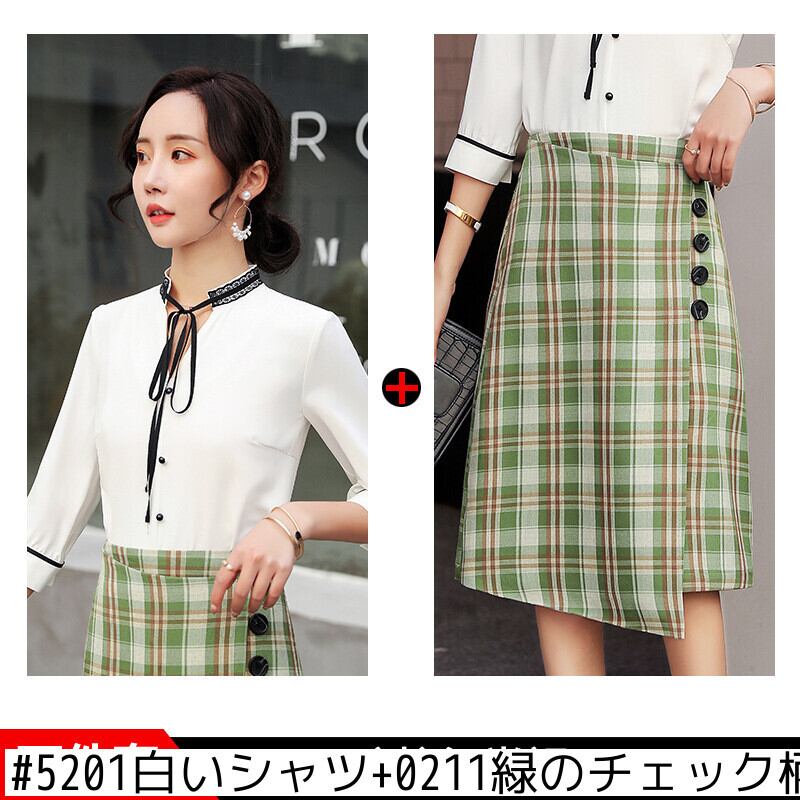 色:5201白いシャツ,5201黄色のシャツ,0211グリーンチェック柄スカート,0211白いスカート,5201白いシャツ+0211緑のチェック柄のスカート,5201イエローシャツ+0211ホワイトスカート