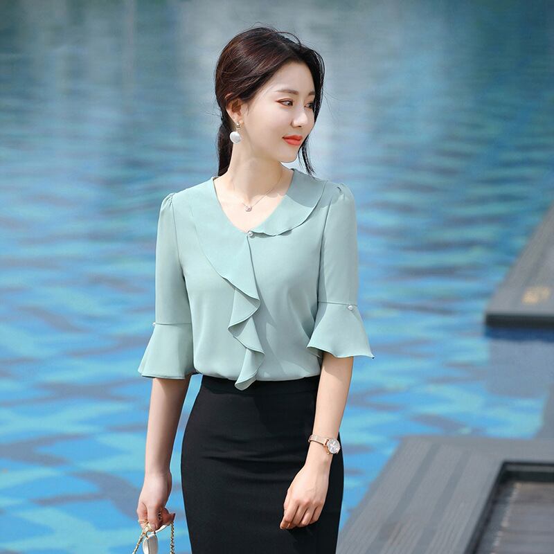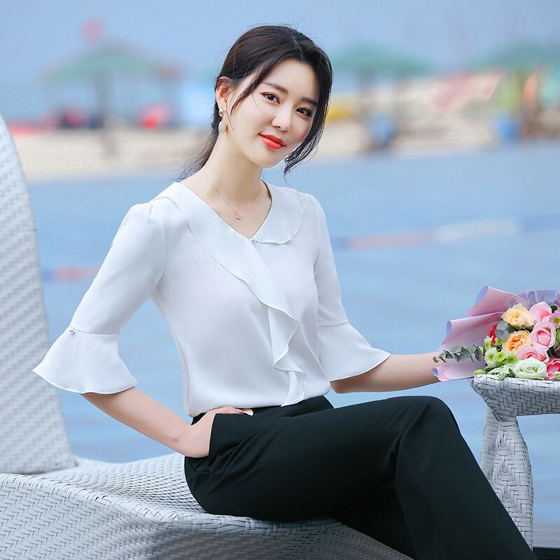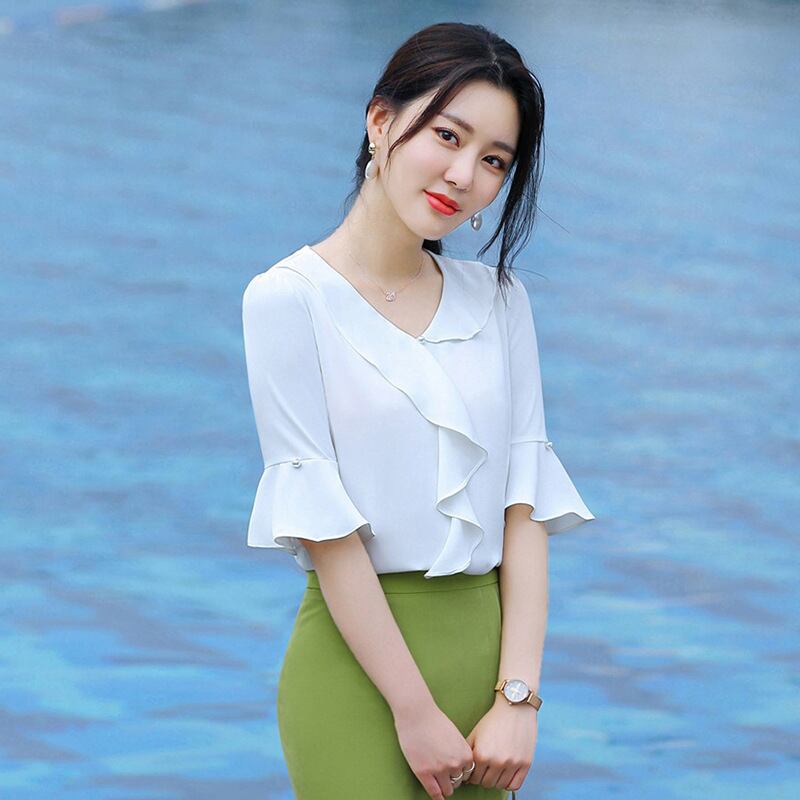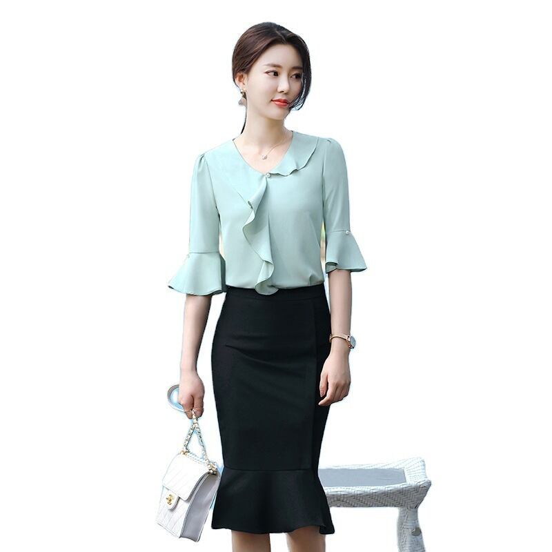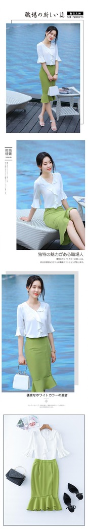 【新作】【送料無料】 ホワイトレースシフォンシャツフィッシュテールバストスカートスーツ女性2020夏の新しいプロのエレガントなツーピーススーツ-アリババ サマー 夏物 12b375426733961