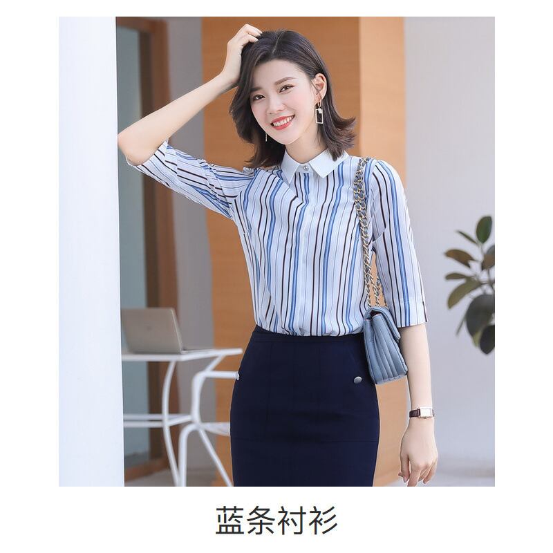 【新作】【送料無料】 2020年夏の新しい女性の5ポイントスリーブストライプレトロカジュアル気質ファッションシャツプロスリムシャツ-アリババ サマー 夏物 12b321384338299