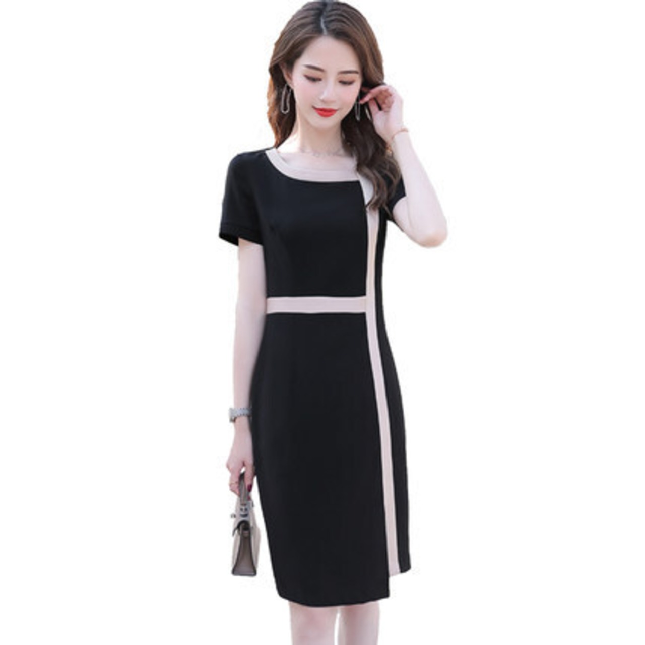 【新作】【送料無料】 2020年夏の新しい女性の黒の半袖ハイウエストバッグヒップドレススリムフィットプロの通勤スーツロングスカート-アリババ ハイウェスト ブラック サマー 夏物 12b361887216542