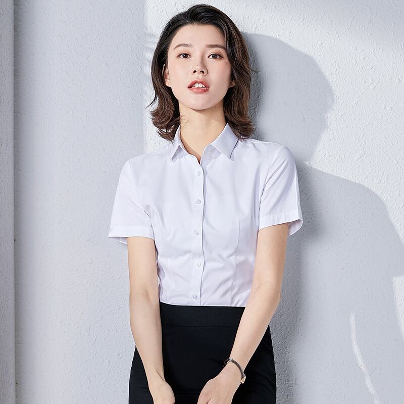【新作】【送料無料】 ホワイト半袖シングルブレストスリムフィットシャツ2020夏の新しい女性のプロのホワイトカラー銀行のフロントデスクのオーバーオール-アリババ サマー 夏物 12b326195064231