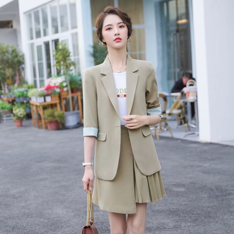 【新作】【送料無料】 春と夏の新しいミッドスリーブの薄い小さなスーツジャケット女性のカジュアルな気質のファッションスーツジャケット七分袖ミッドレングススタイル-アリババ スプリング 春物 サマー 夏物 12b357946174903