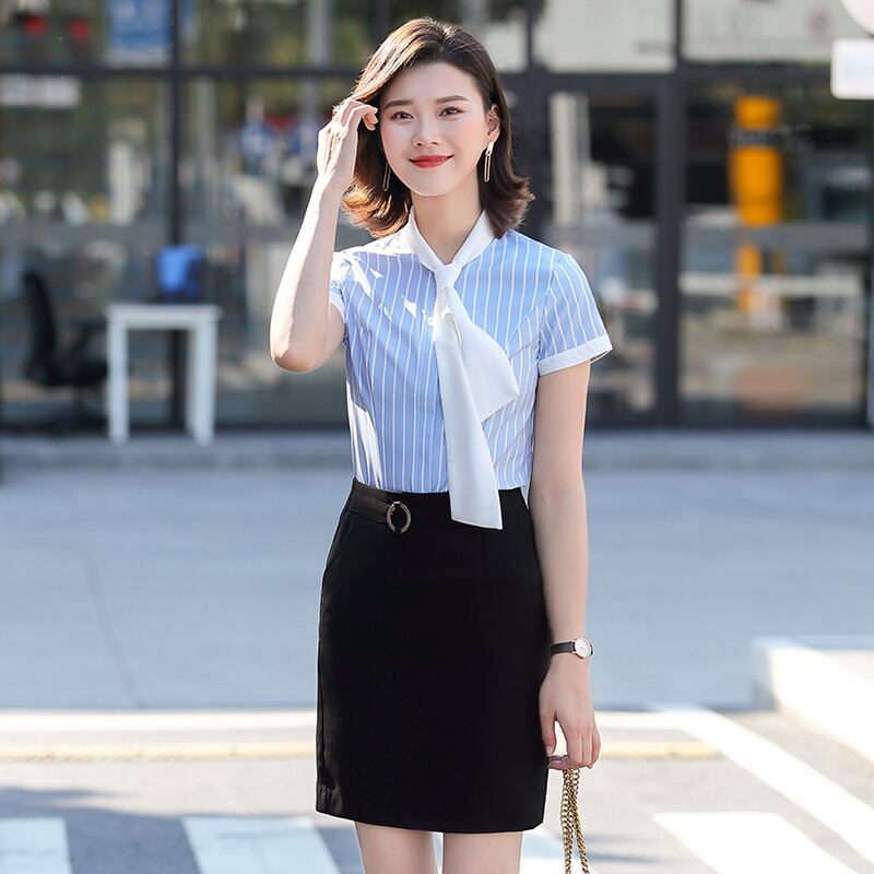 【新作】【送料無料】 2020ブルーストライプ半袖シャツバンクホワイトカラーインタビュー作業服は薄い気質のOL通勤シンプルトップ-アリババ 12b331528807946