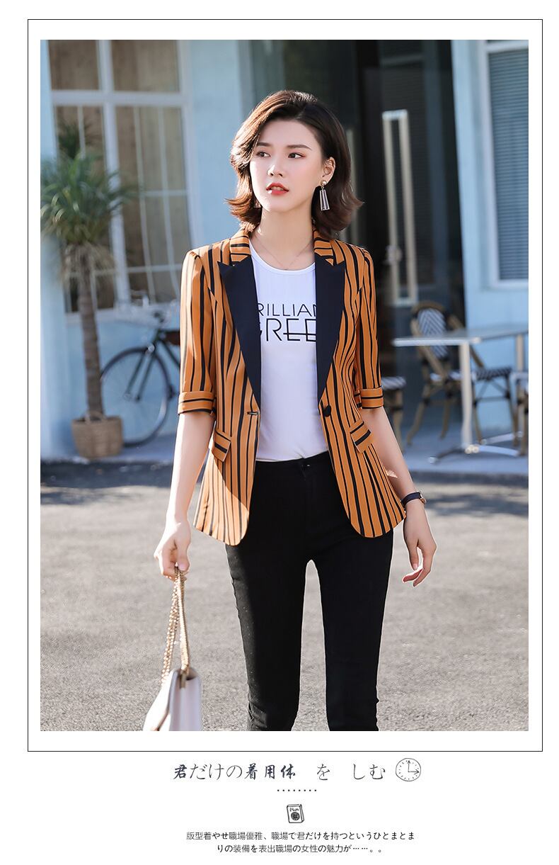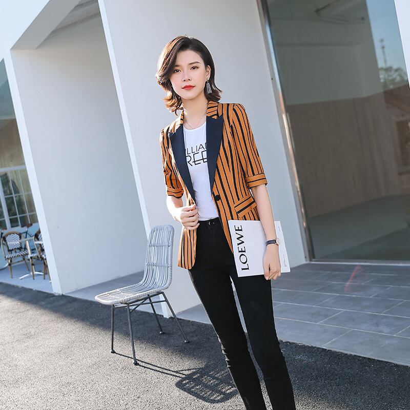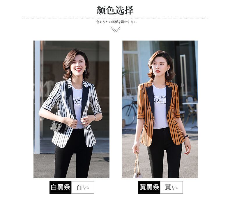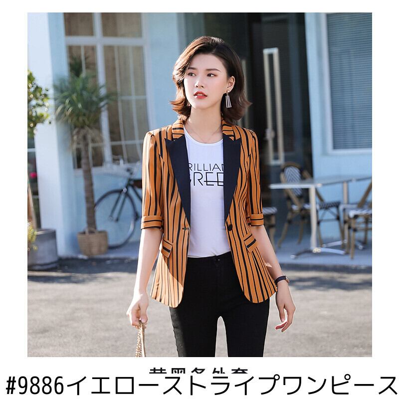 【新作】【送料無料】 2020年春夏新作レディースコントラストストライプスーツジャケット、ミドルスリーブレトロスモールフレグランススタイルスリムプロスーツ-アリババ スプリング 春物 サマー 夏物 12b373791533999