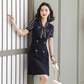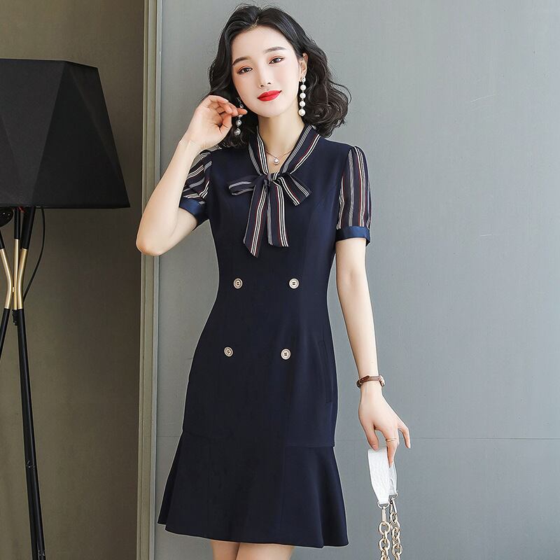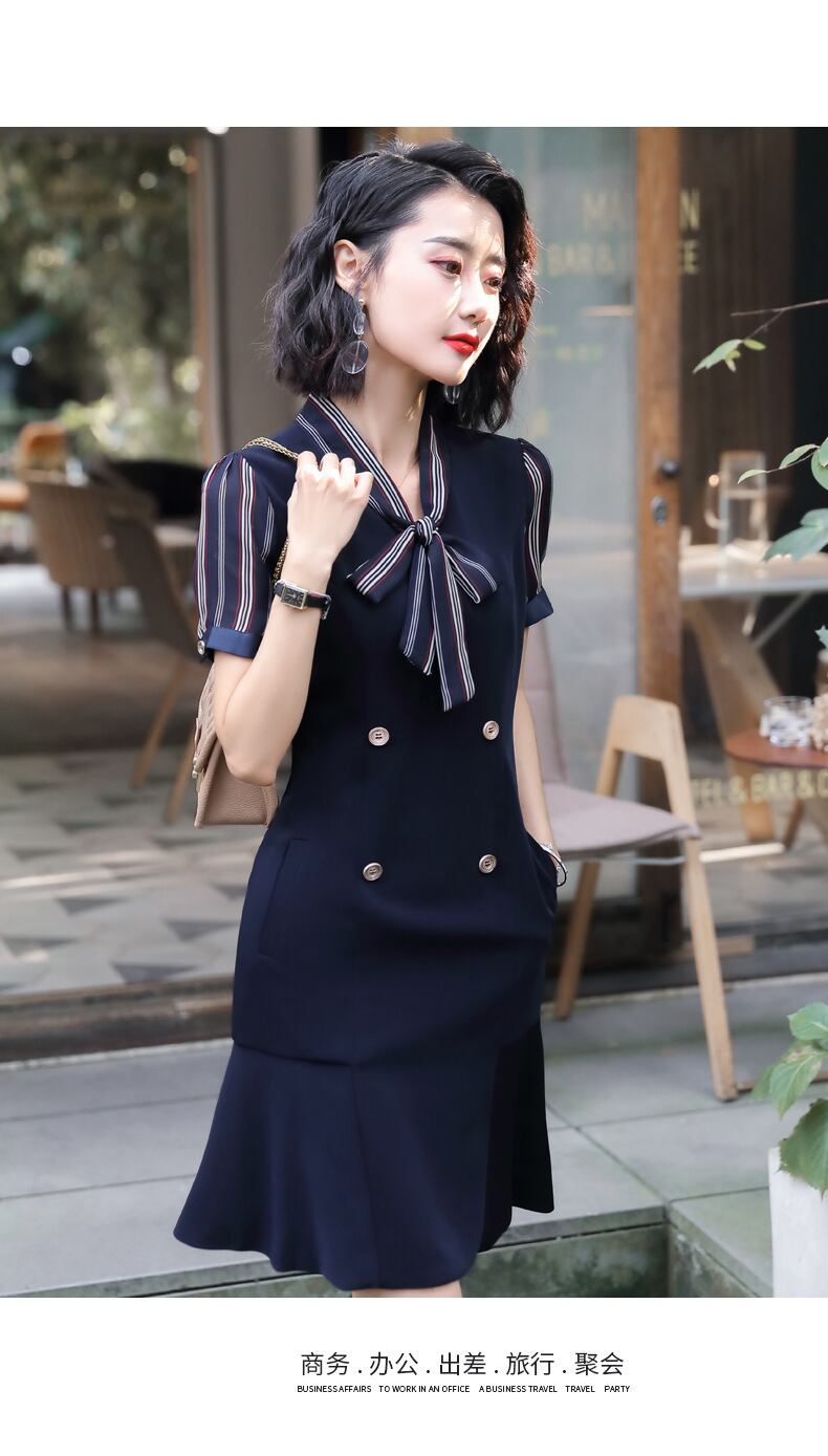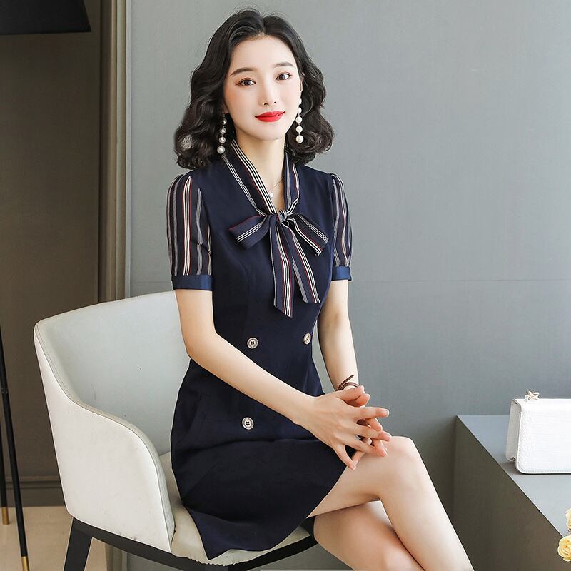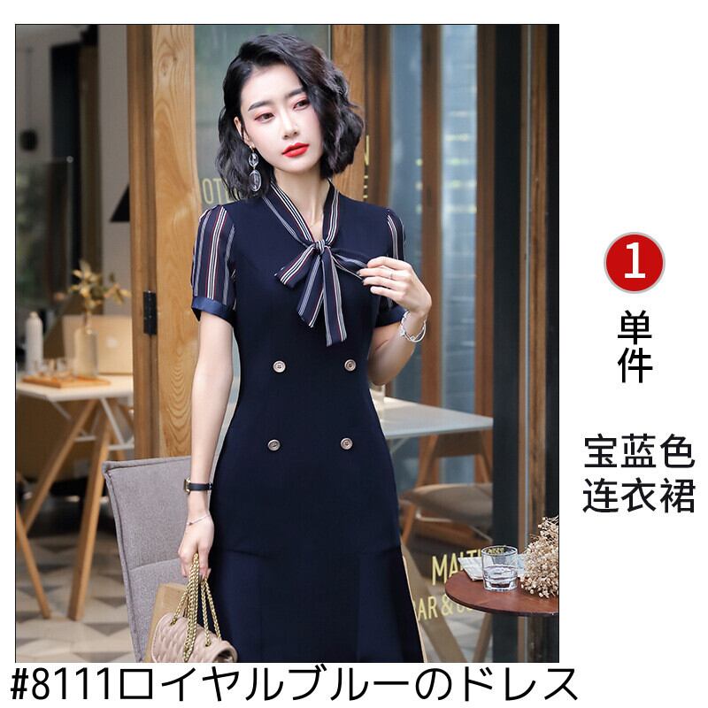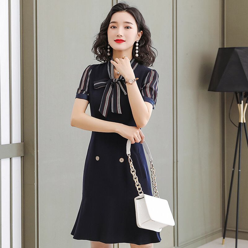 【新作】【送料無料】 プロのバッグヒップドレス2020夏の新しい半袖スタンドアップカラーネクタイビジネス通勤OL小さなロングスカート-アリババ サマー 夏物 12b393941996010