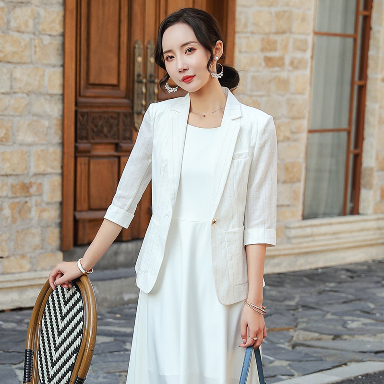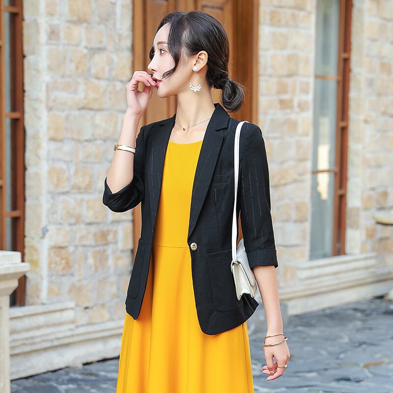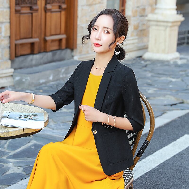 【新作】【送料無料】 2020年夏の新しい女性の薄い七分袖のスーツは薄く見える、洋風、スカートジャケット、黒のスーツ-アリババ ブラック サマー 夏物 12b394496364813
