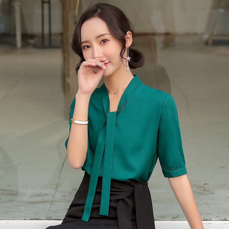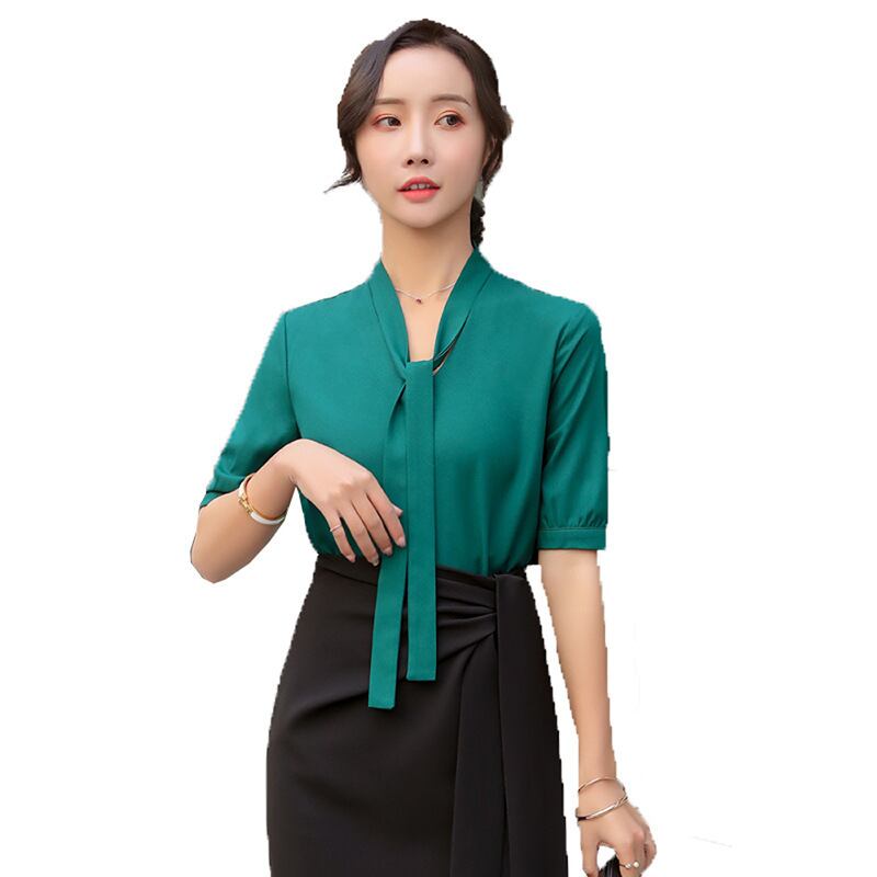 【新作】【送料無料】 ホワイトカラースタンドカラープルオーバーミドルスリーブシャツスーツスカート女性2020夏の新しいプロのトップスとスカートツーピーススーツ-アリババ サマー 夏物 12b367751546206