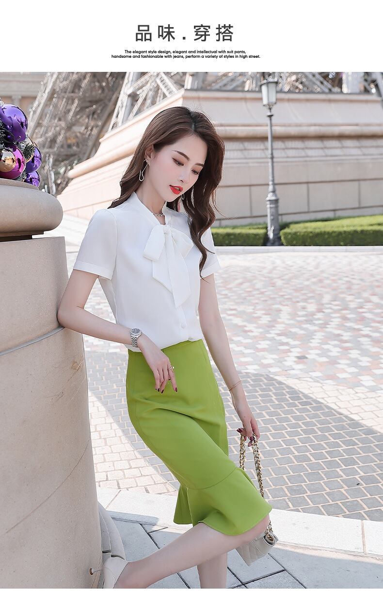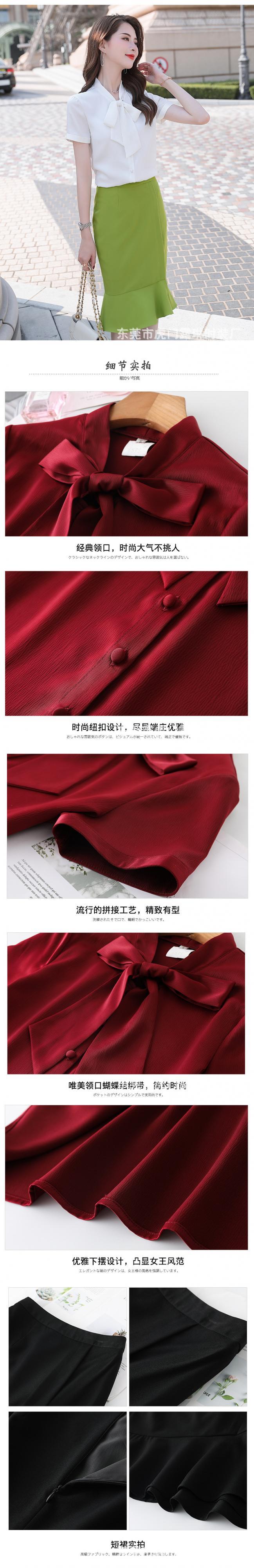 【新作】【送料無料】 赤のエレガントな弓半袖ブラウスシャツフィッシュテールスカートスーツ女性2020夏の新しい通勤ツーピーススーツ-アリババ ショート レッド リボン ハーフスリーブ サマー 夏物 12b331824578351