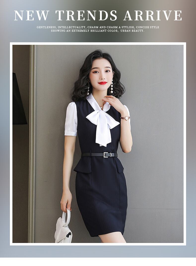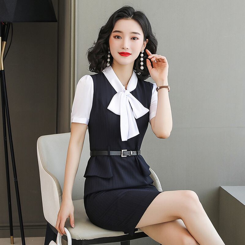 【新作】【送料無料】 2020年夏の新しいプロのホワイトカラードレスレディースコントラスト半袖ハイウエストバッグヒップミドル丈スーツスカート-アリババ ハイウェスト サマー 夏物 12b360865817108