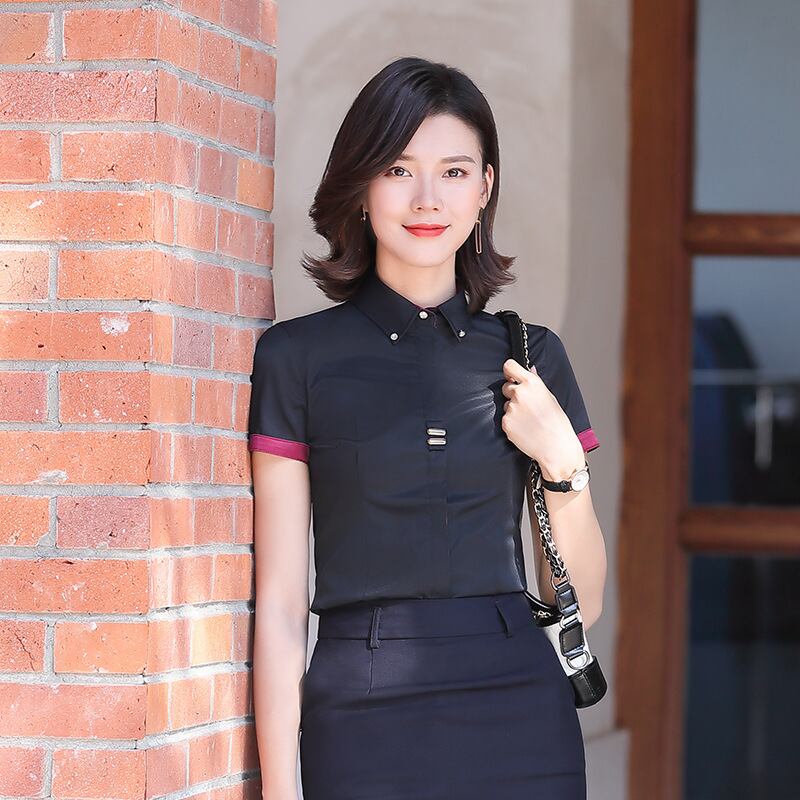 【新作】【送料無料】 2020年夏の新しいプロのフロントデスクホワイトカラーオーバーオール半袖シャツスーツハーフレングススカートツーピーススーツ女性-アリババ サマー 夏物 12b365293139469