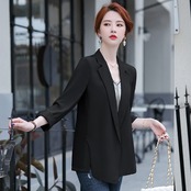 【新作】【送料無料】 2020年夏の新しい女性の七分袖黒薄いシフォン不規則なスーツジャケットネット赤気質スーツ-アリババ レッド ブラック サマー 夏物 12b34798068422