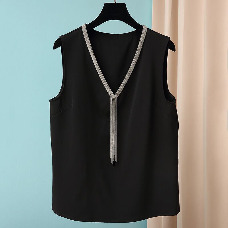 【新作】【送料無料】 クリスタルビーズペンダントベストVネックスリングノースリーブミニベストレディースボトミングシャツサマーボトミングシャツアウター-アリババ 夏物 12b310422521965